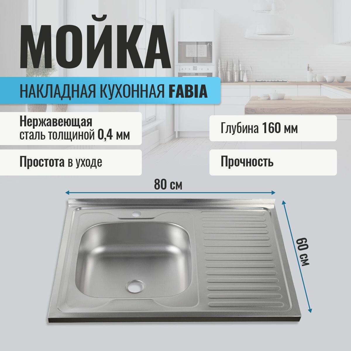 Купить Мойка для кухни FABIA накладная, 80х60, глубина 160мм, нержавеющая сталь