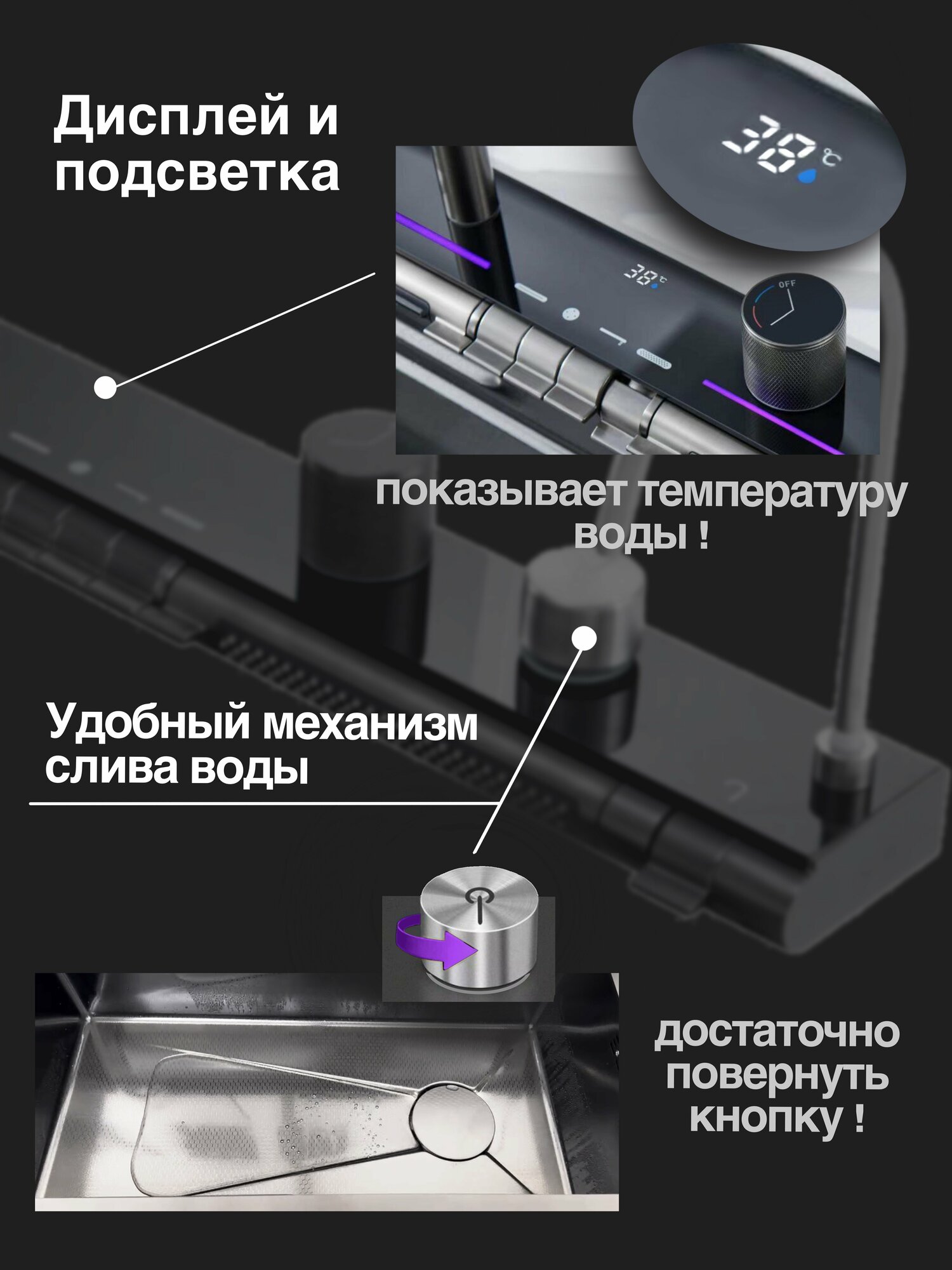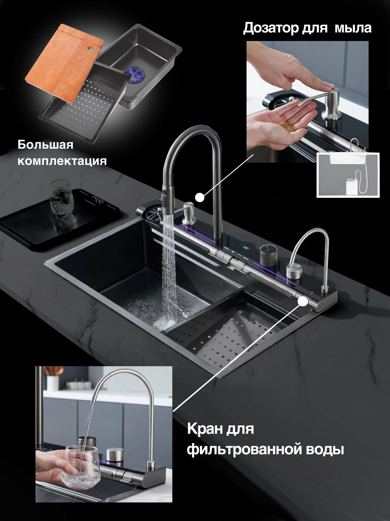 Кухонная мойка многофункциональная с регулирующимися водопадами (смеситель в комплекте) интересное:
