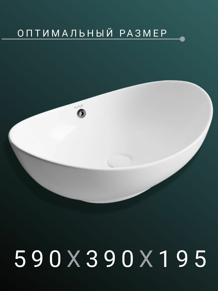 Купить Раковина в ванную накладная на столешницу овал 590*390*195 Ш*Г*В
