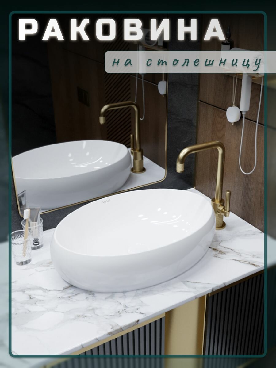 Купить Раковина в ванную накладная на столешницу овал 600*400*150 Ш*Г*В