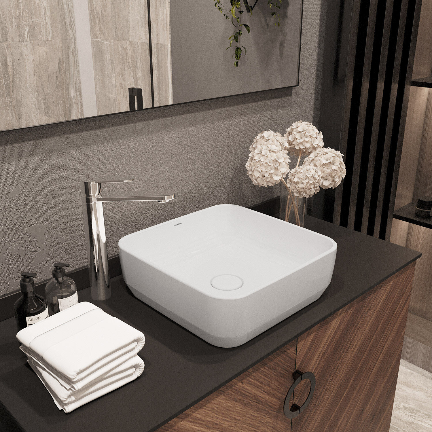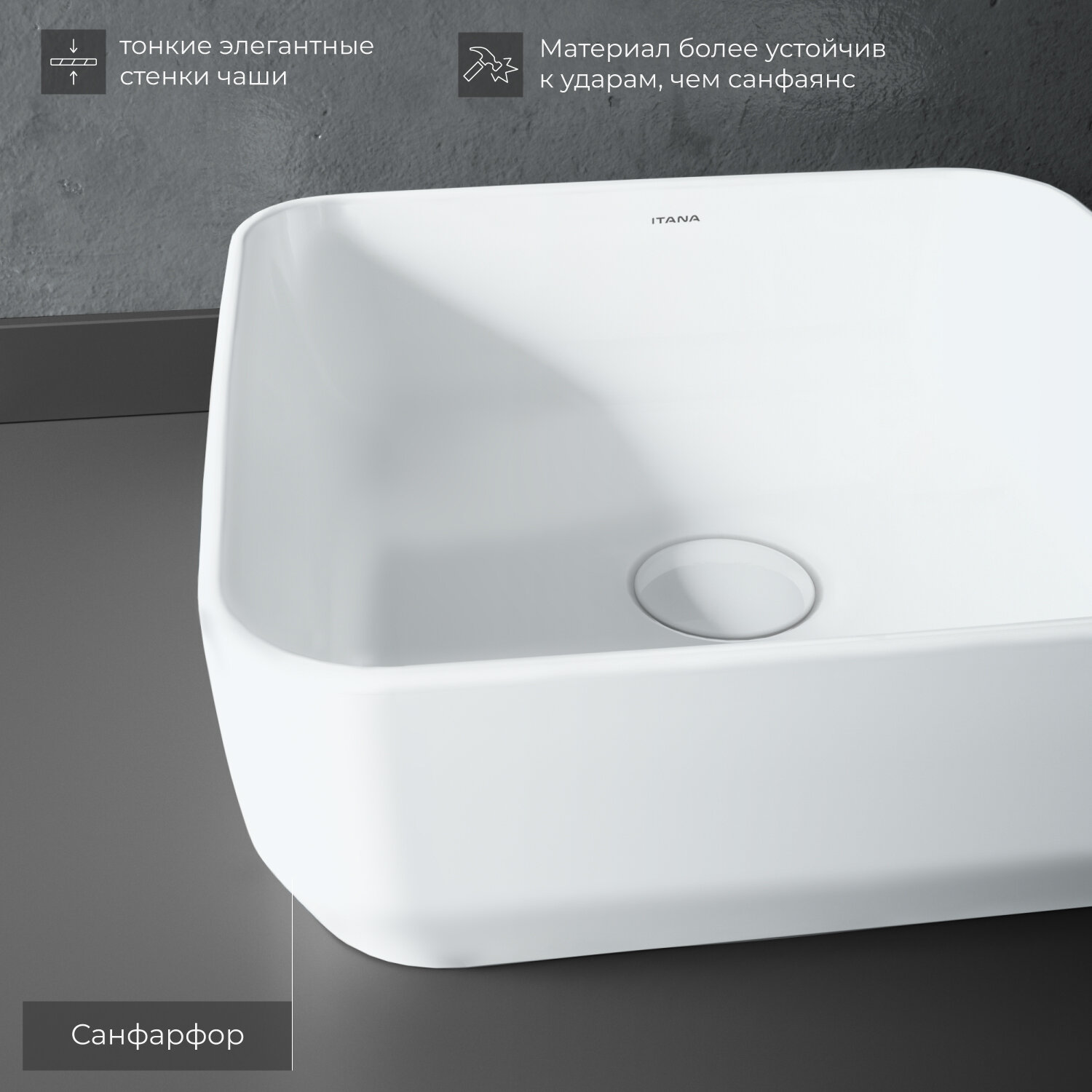 Раковина накладная для ванной ITANA POINT grey 358х358х137