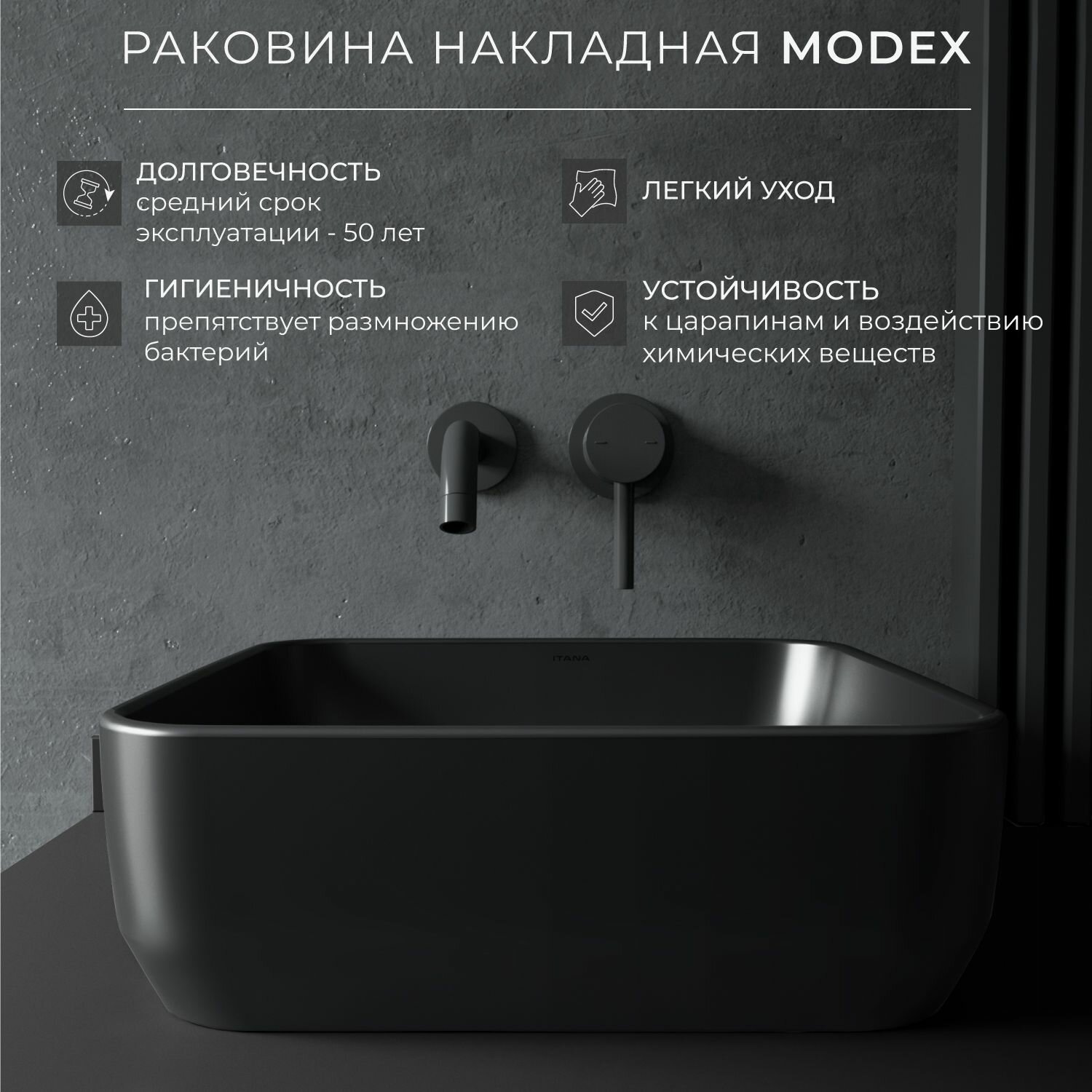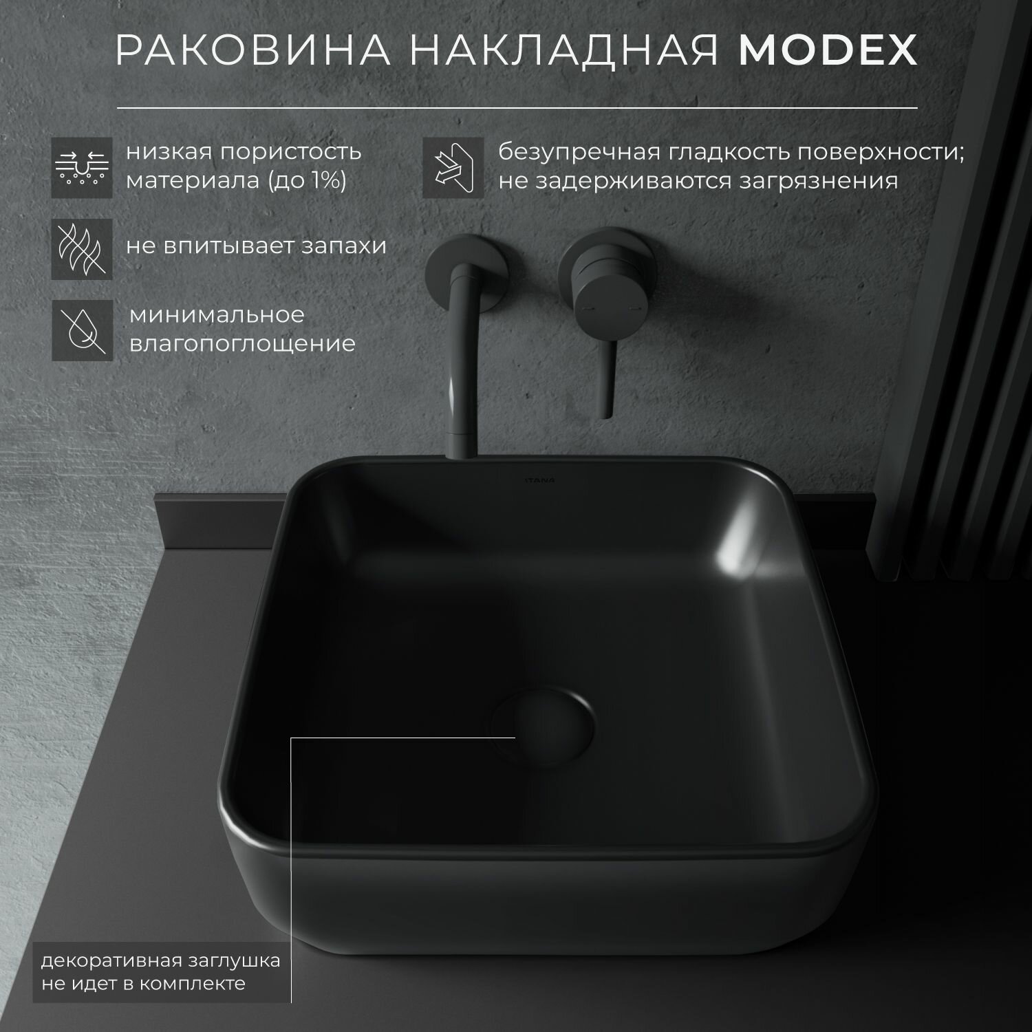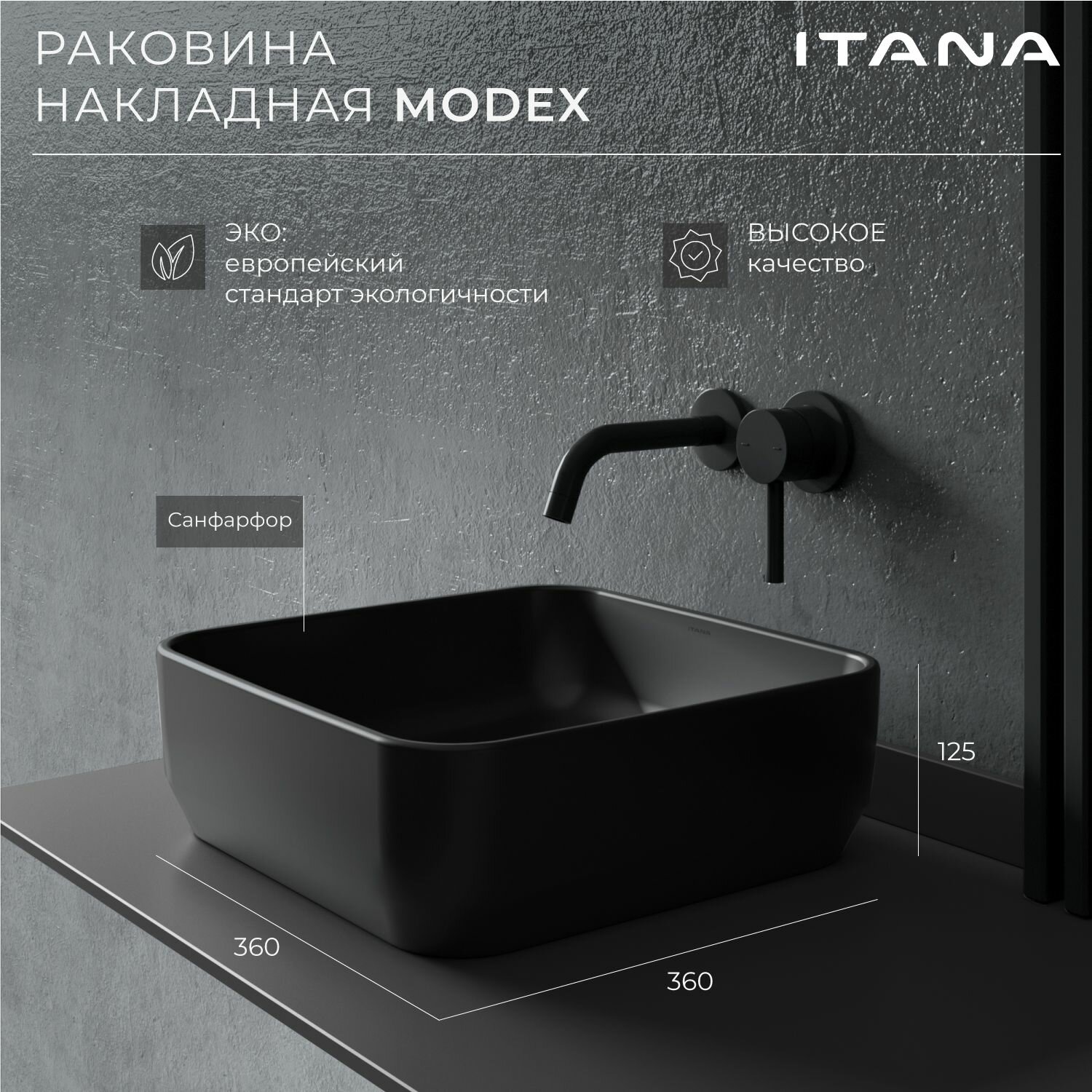 СохранитьРаковина накладная для ванной ITANA MODEX black 360х360х125 интересное: