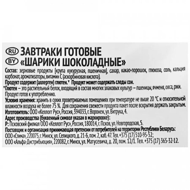 Готовый завтрак любятово Шарики шоколадные, 200г