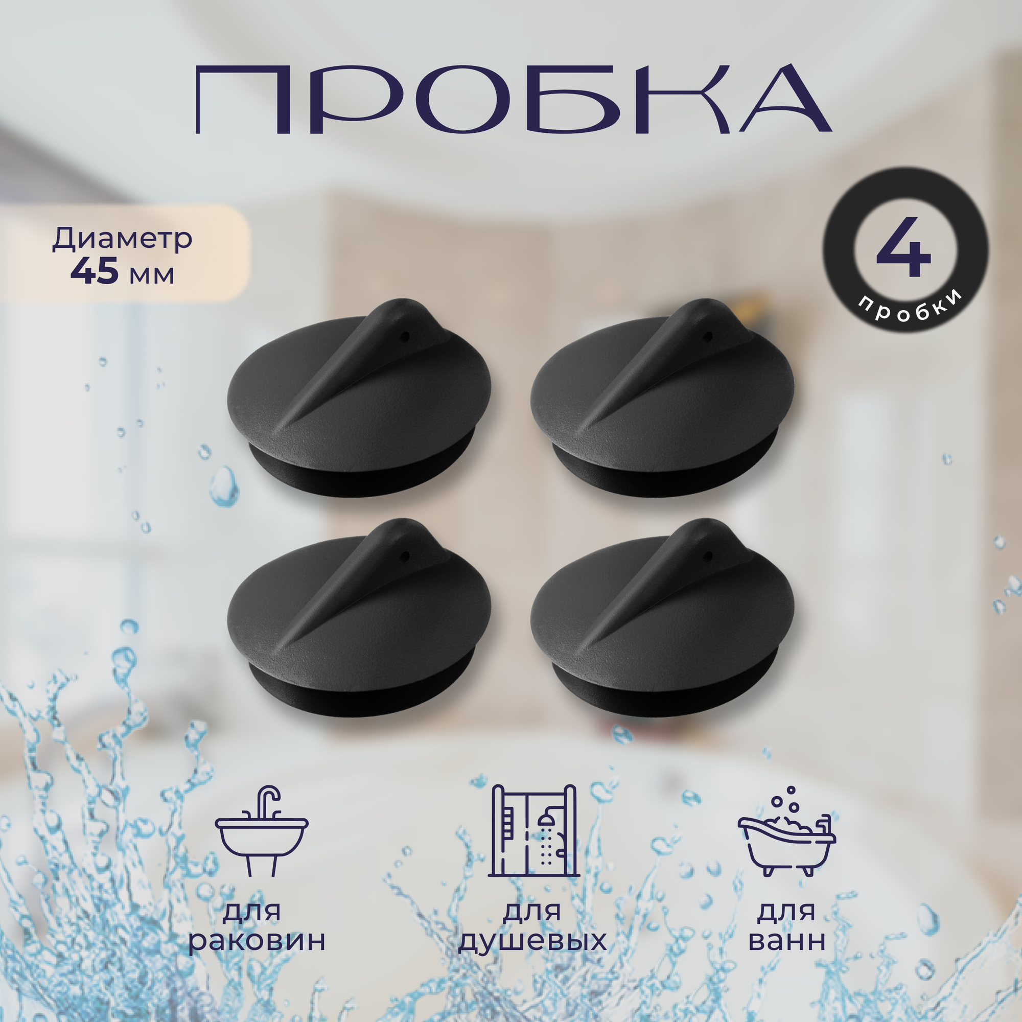 Купить Пробка для ванн и раковин, диаметром 45 мм 4 штуки черная