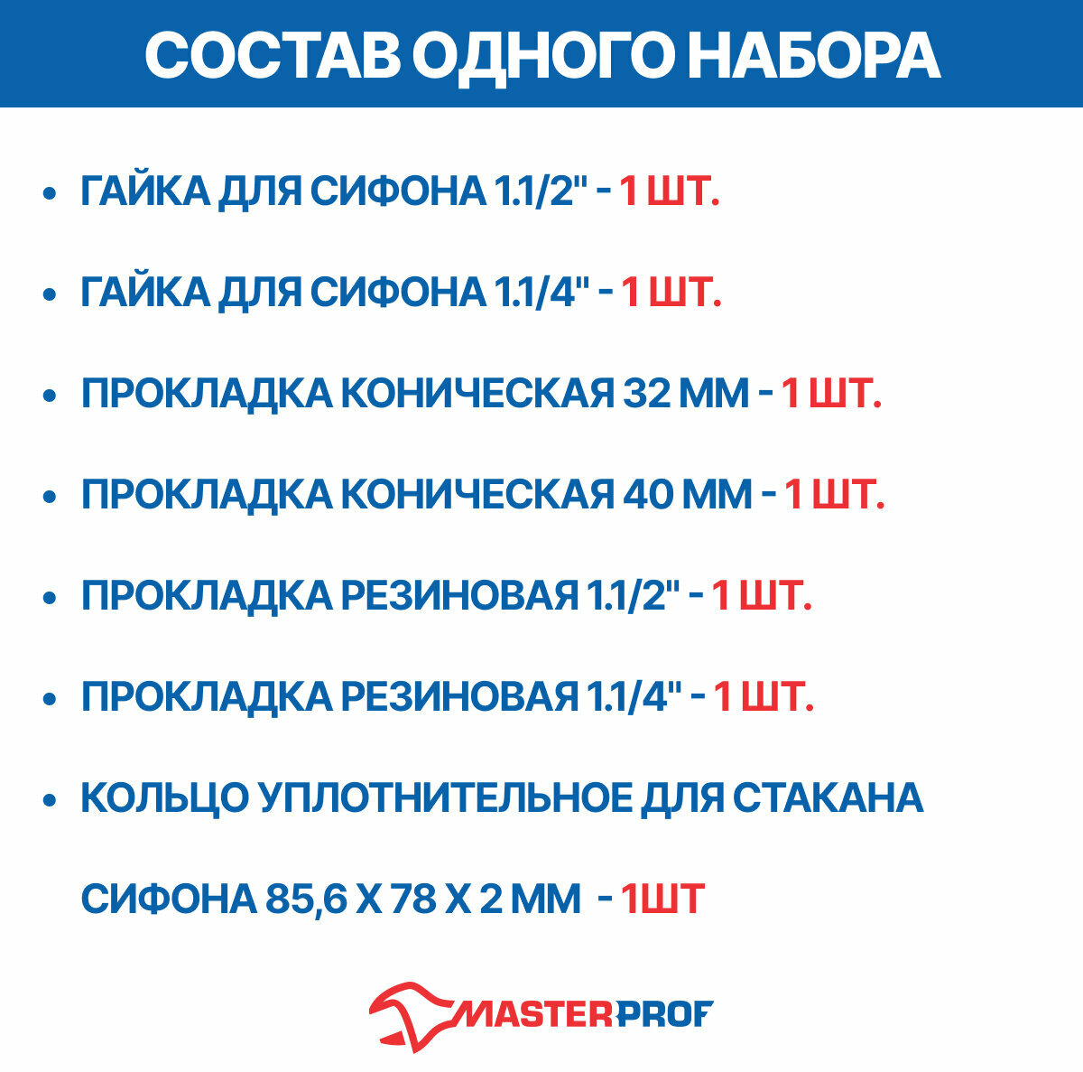 Набор ремонтный для сифона раковины умывальника 1.1/2" и 1.1/4" интересное: