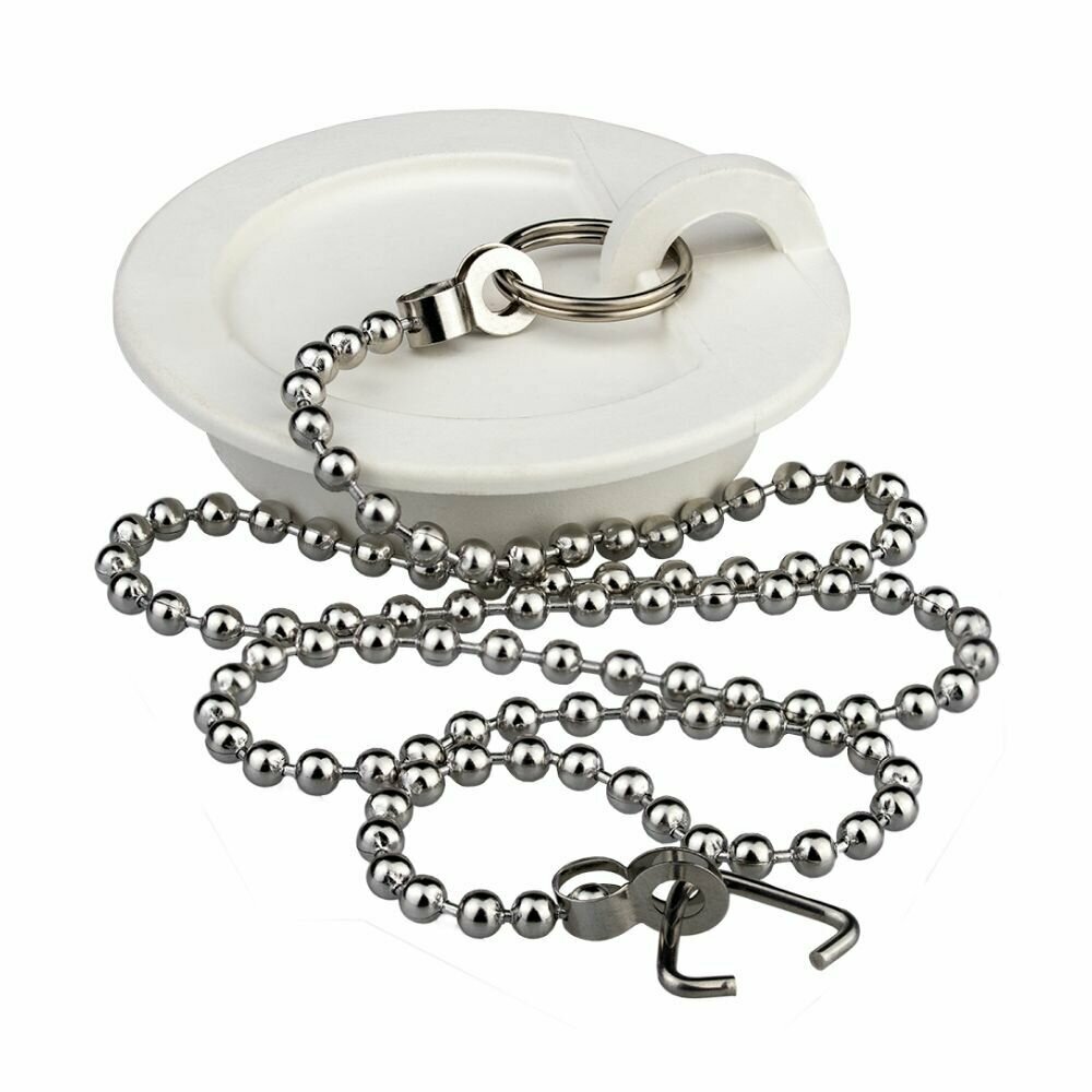 Купить Пробка для ванны и раковины с цепочкой 45 см, белая, диаметр 43 мм