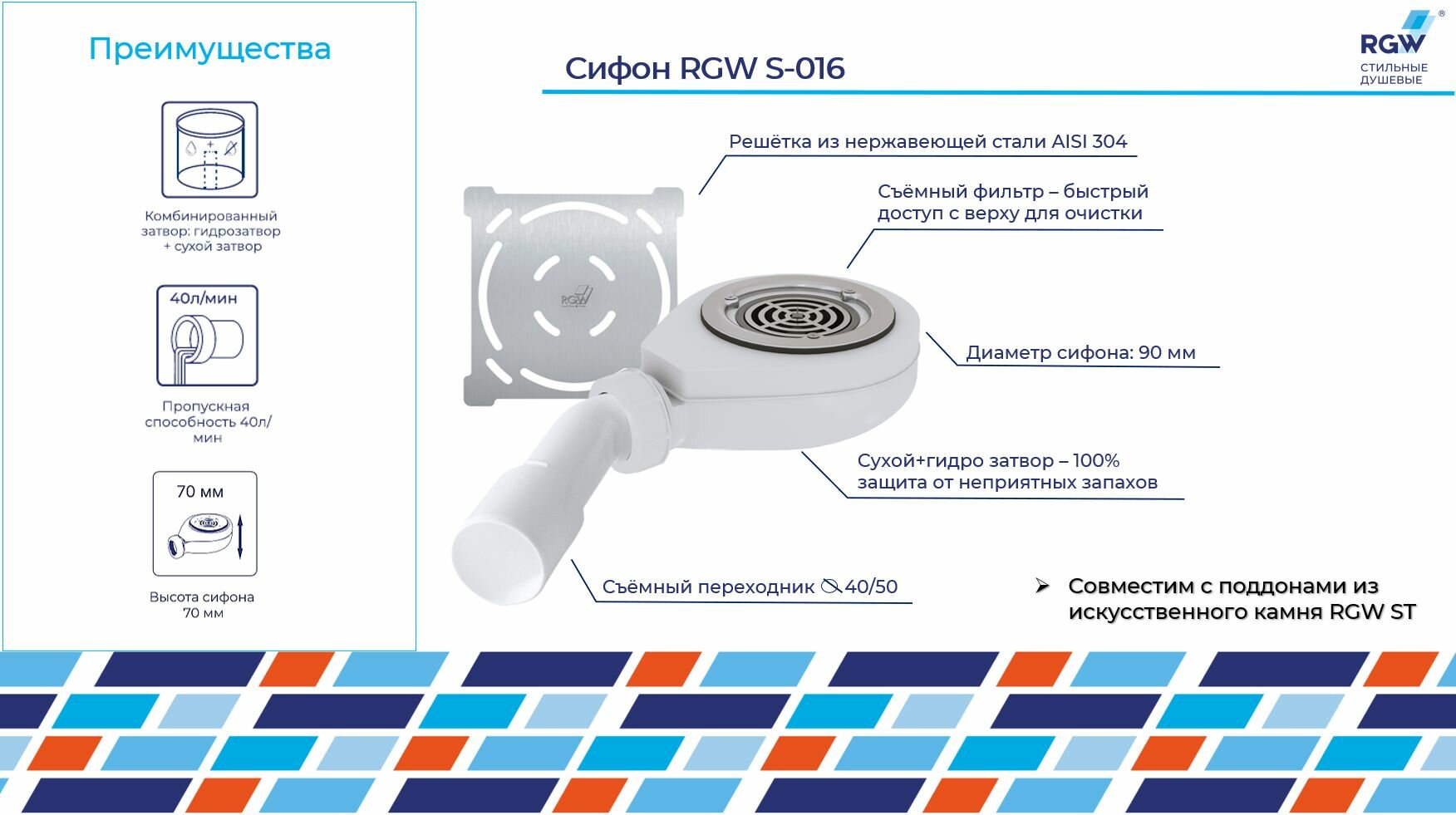 Сифон для душевых поддонов RGW ST S-016 50241600-01 интересное: