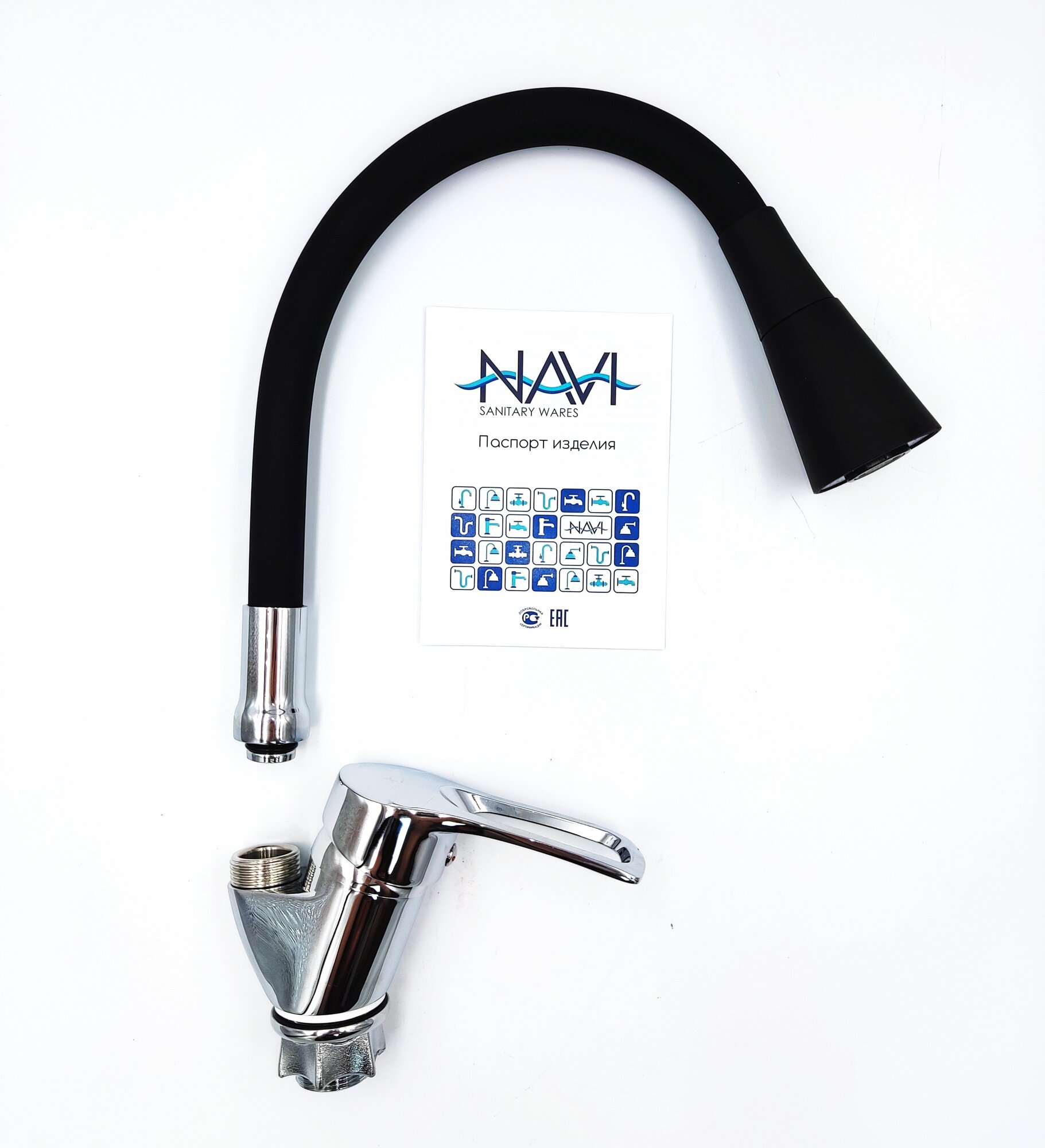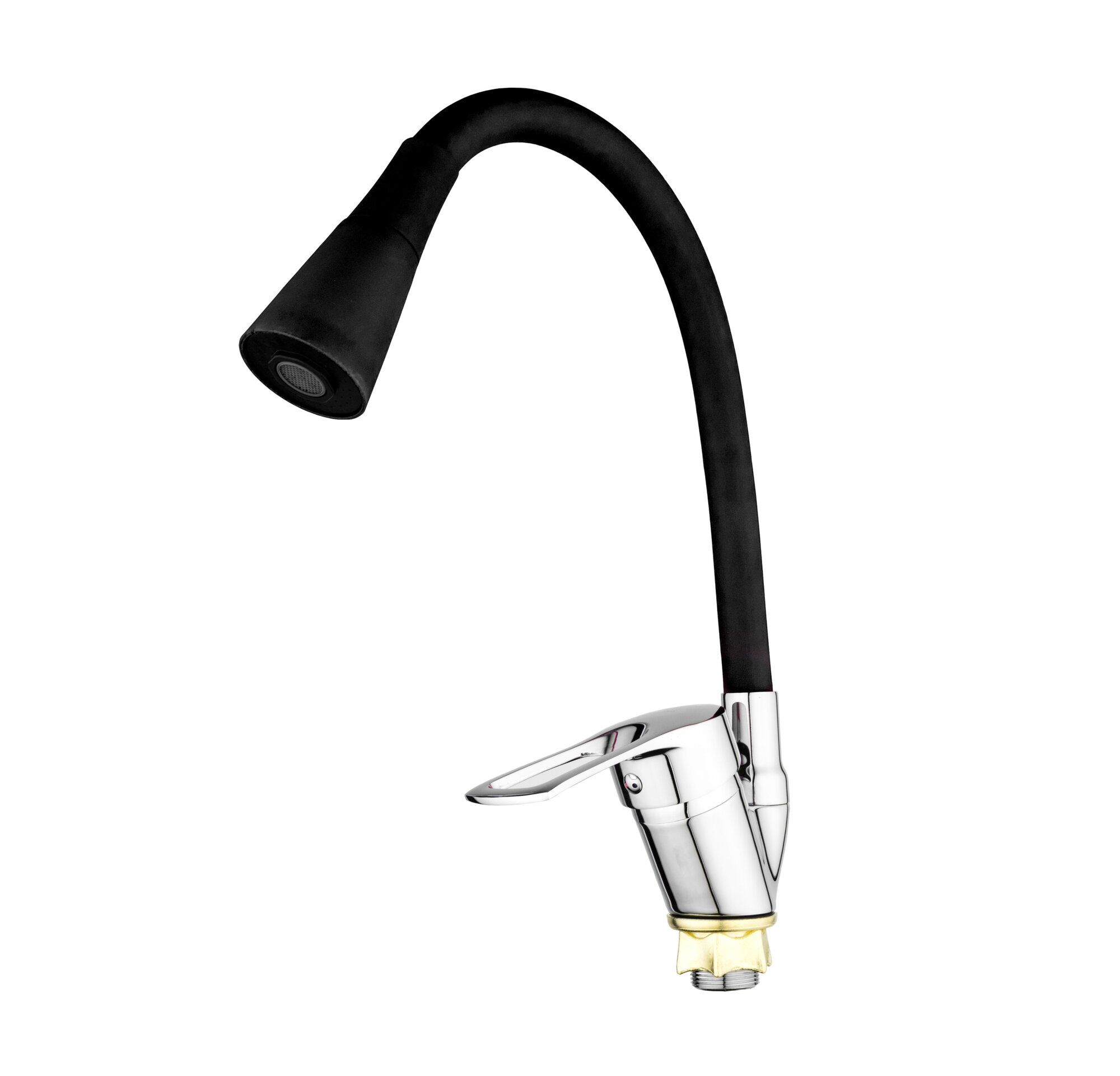 Смеситель для кухни с гибким изливом, кран на кухню DER43-229BL БЕЗ ГИБКОЙ ПОДВОДКИ, хром/ черный