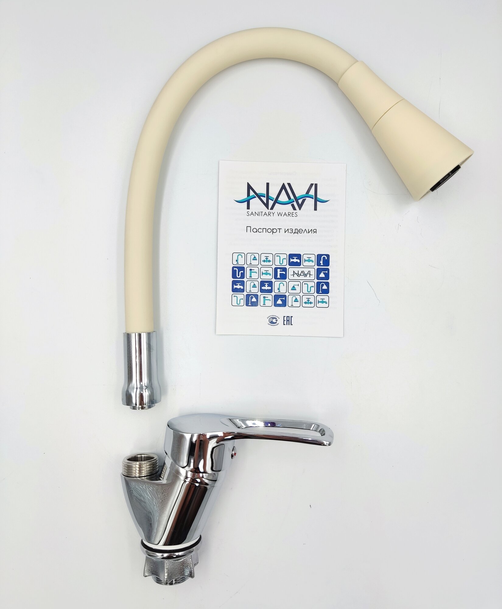 Купить Смеситель для кухни с гибким изливом TER42-305BG, цвет: бежевый/хром. Без гибкой подводки.
