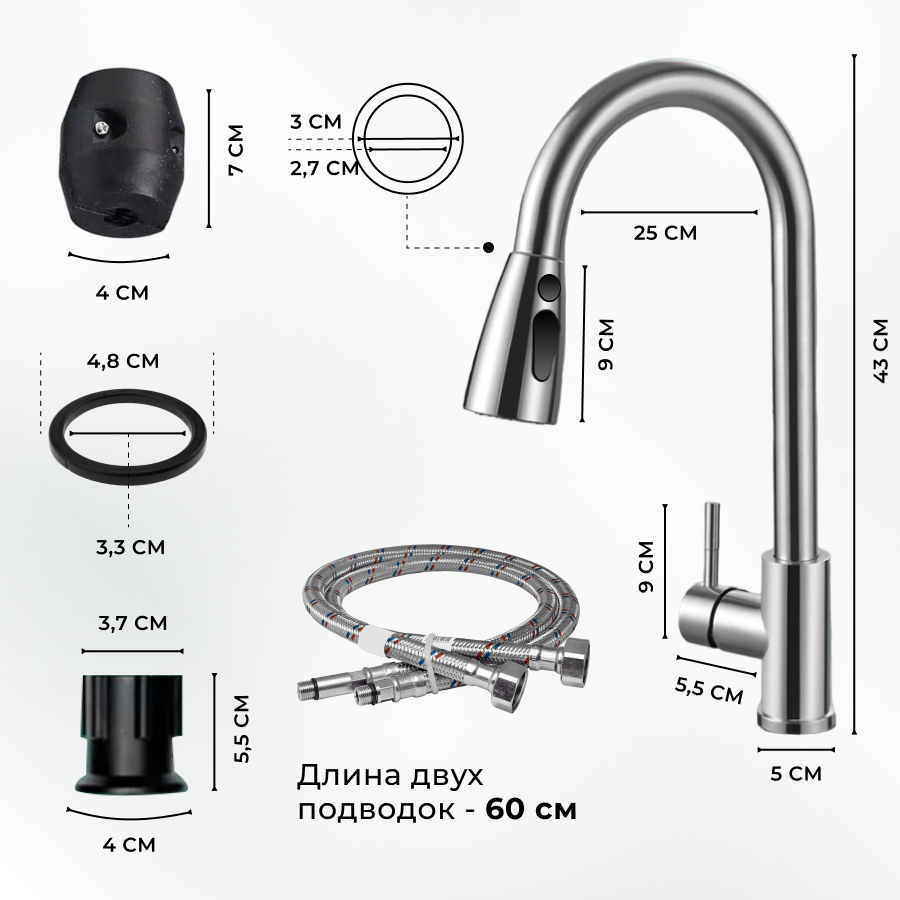 Смеситель кухонный для раковины с гибким изливом интересное: