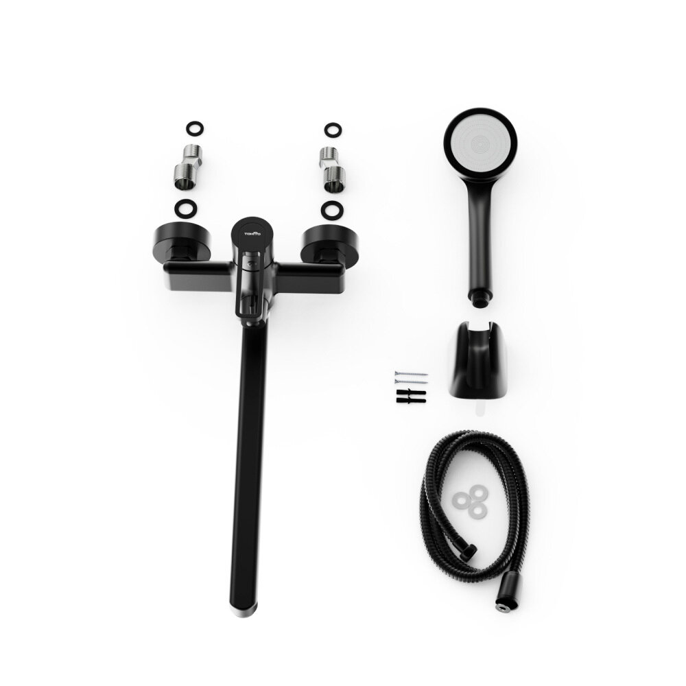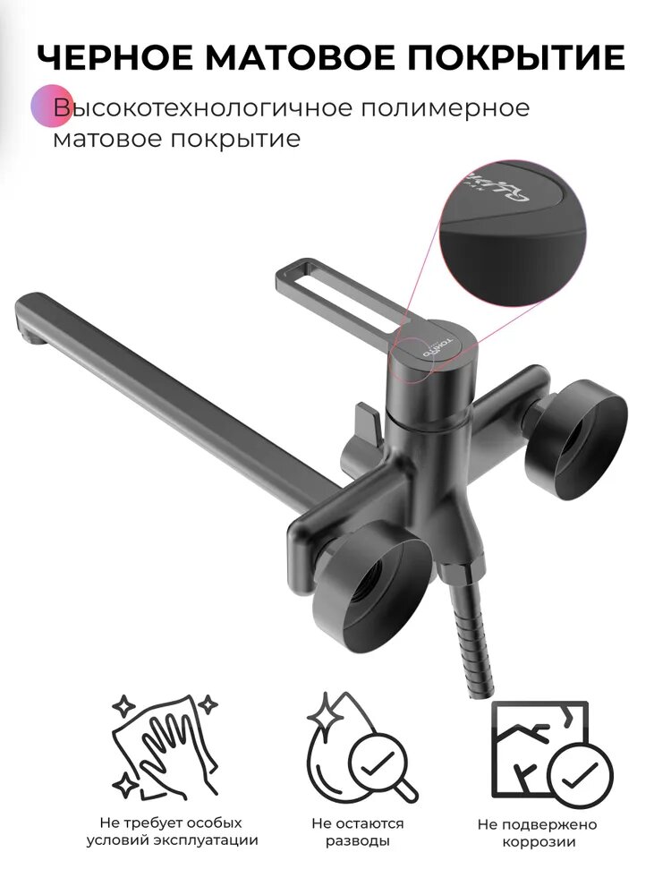 Купить Смеситель для ванной с длинным изливом и лейкой TOKITO TOK-KUD-1015 серия KUDO, латунный, черный матовый