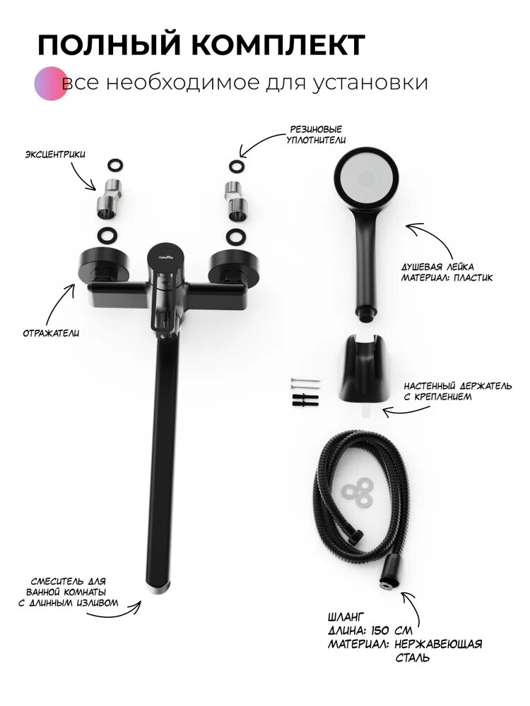 СохранитьСмеситель для ванной с длинным изливом и лейкой TOKITO TOK-KUD-1015 серия KUDO, латунный, черный матовый интересное: