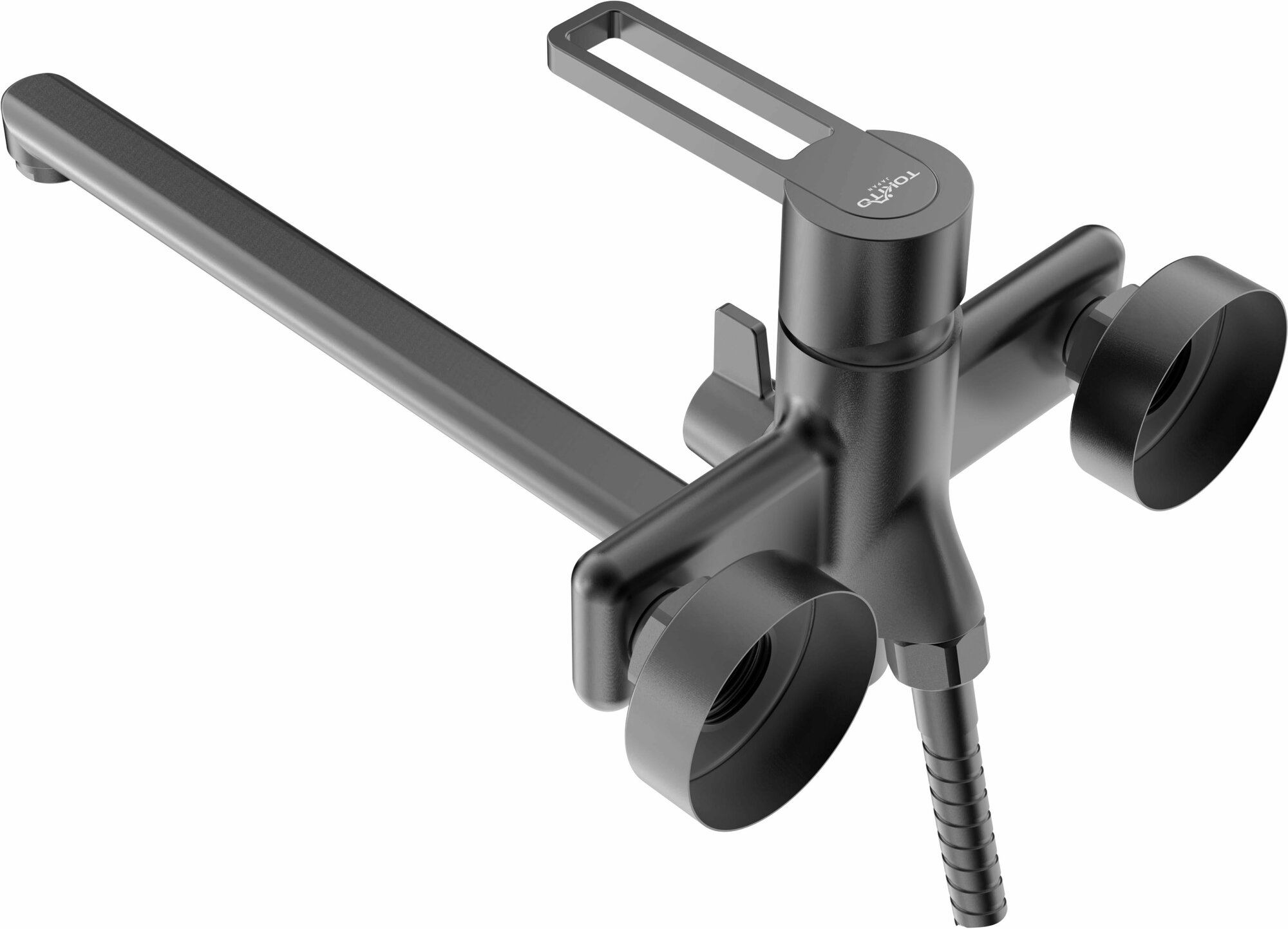 Смеситель для ванной с длинным изливом с лейкой TOKITO TOK-MIT-1015GM серия MITSUISHI, латунный, матовый черный