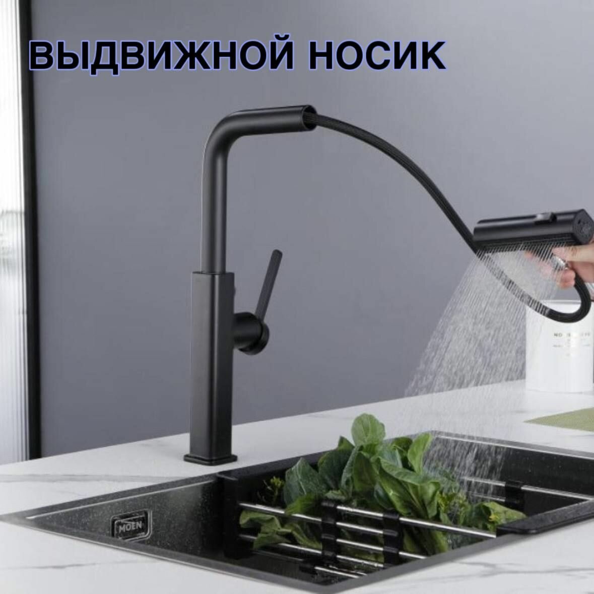 Смеситель черный для раковины на кухню, гибкий вытяжной излив , кран кухонный , с водопадным душем интересное: