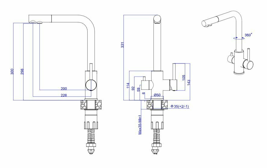 | Излив | для фильтрованной воды, поворотный, фиксированный |