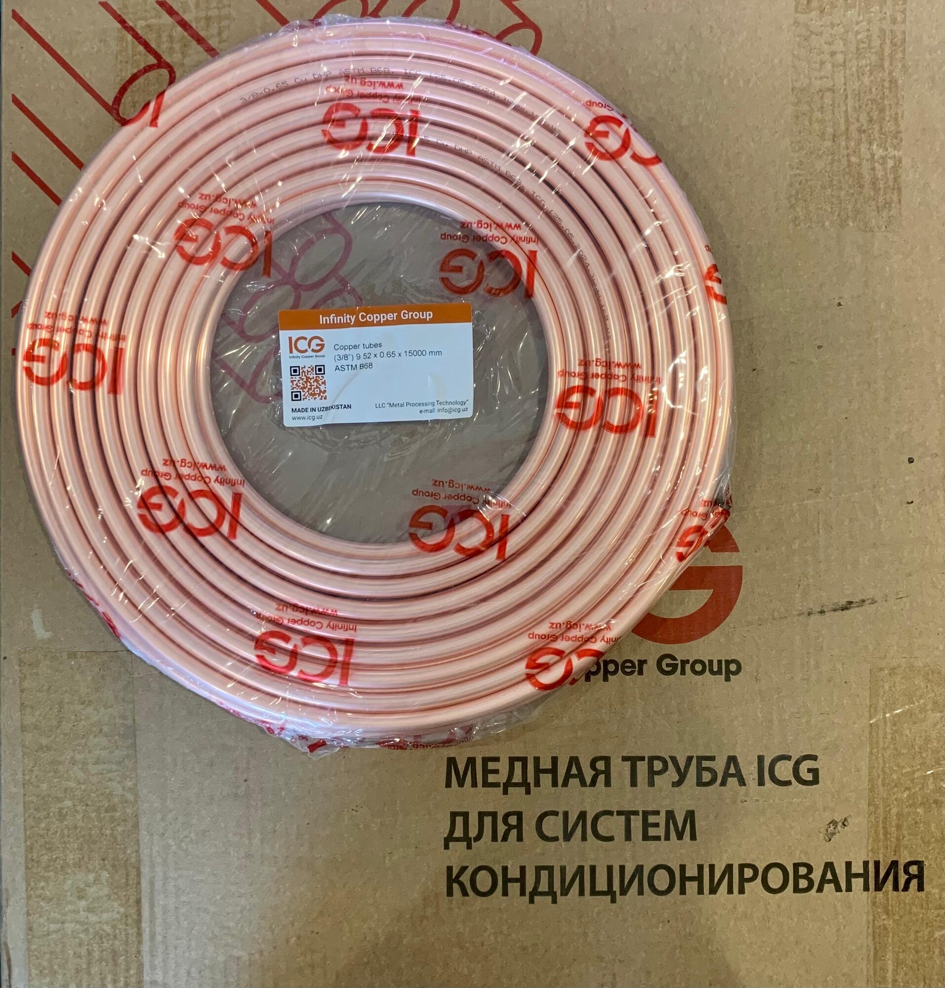Труба медная для кондиционера 3/8 (9,52х0,65х15м) бухта 15 метров