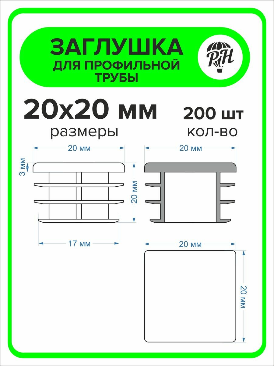 Купить Заглушка для профильной трубы 20х20 мм, 200 штук