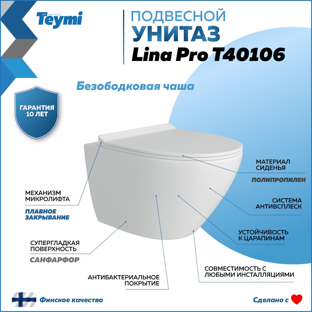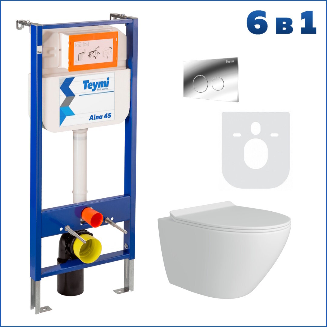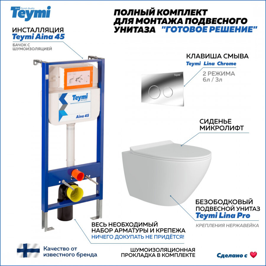 Комплект Teymi "Готовое решение": Инсталляция Aina 45 + клавиша смыва Lina хром + унитаз Lina Pro F01422 интересное:
