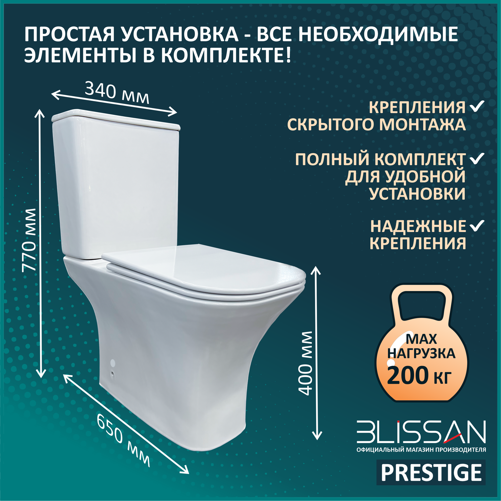 СохранитьУнитаз напольный безободковый BLISSAN Prestige Rimless компакт с сиденьем дюропласт микролифт, быстросъемное интересное: