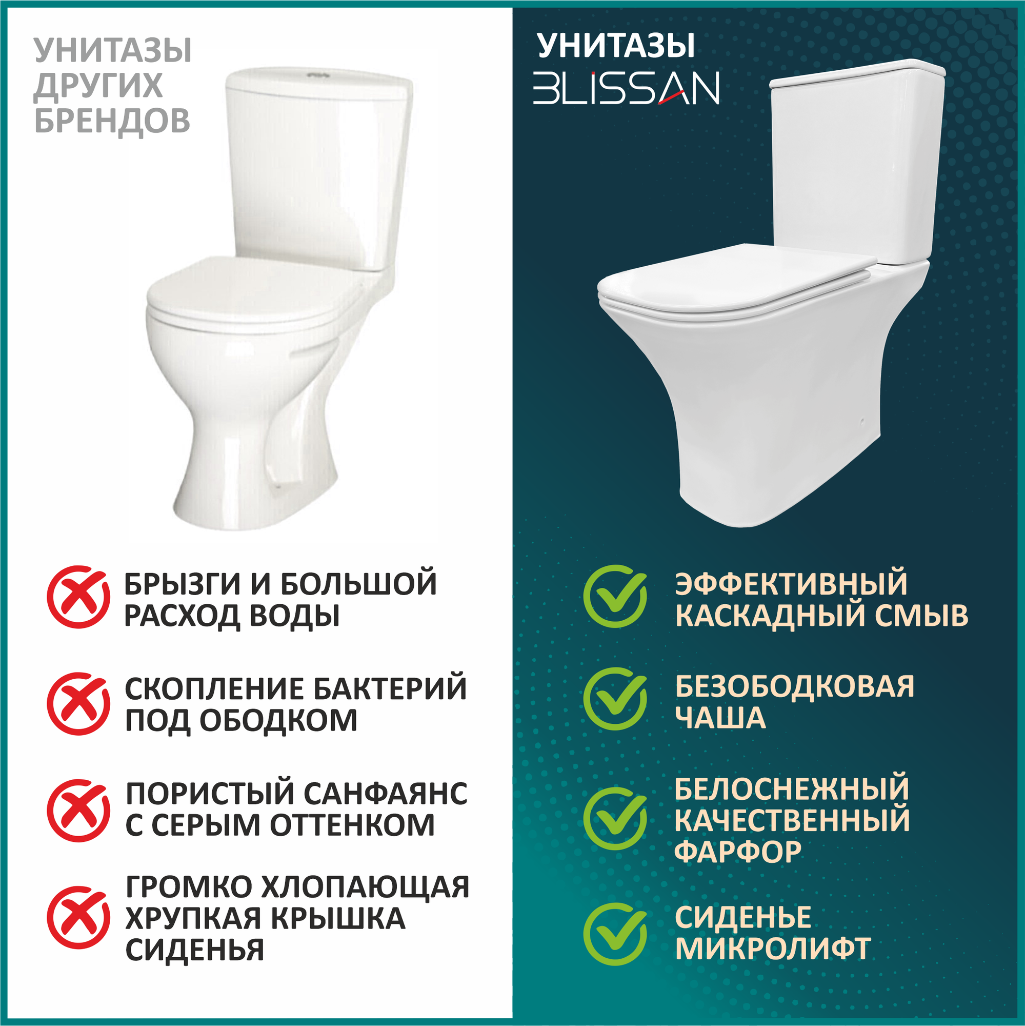 Унитаз напольный BLISSAN Classic Rimless компакт безободковый с сиденьем дюропласт микролифт быстросъемное