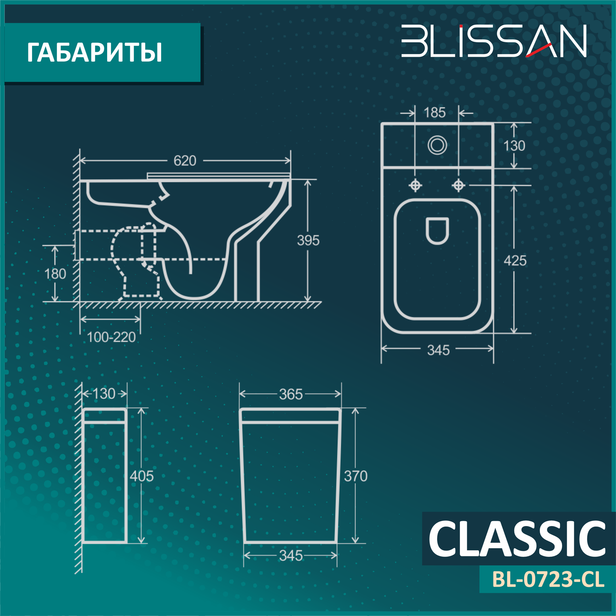 СохранитьУнитаз напольный BLISSAN Classic Rimless компакт безободковый с сиденьем дюропласт микролифт быстросъемное интересное: