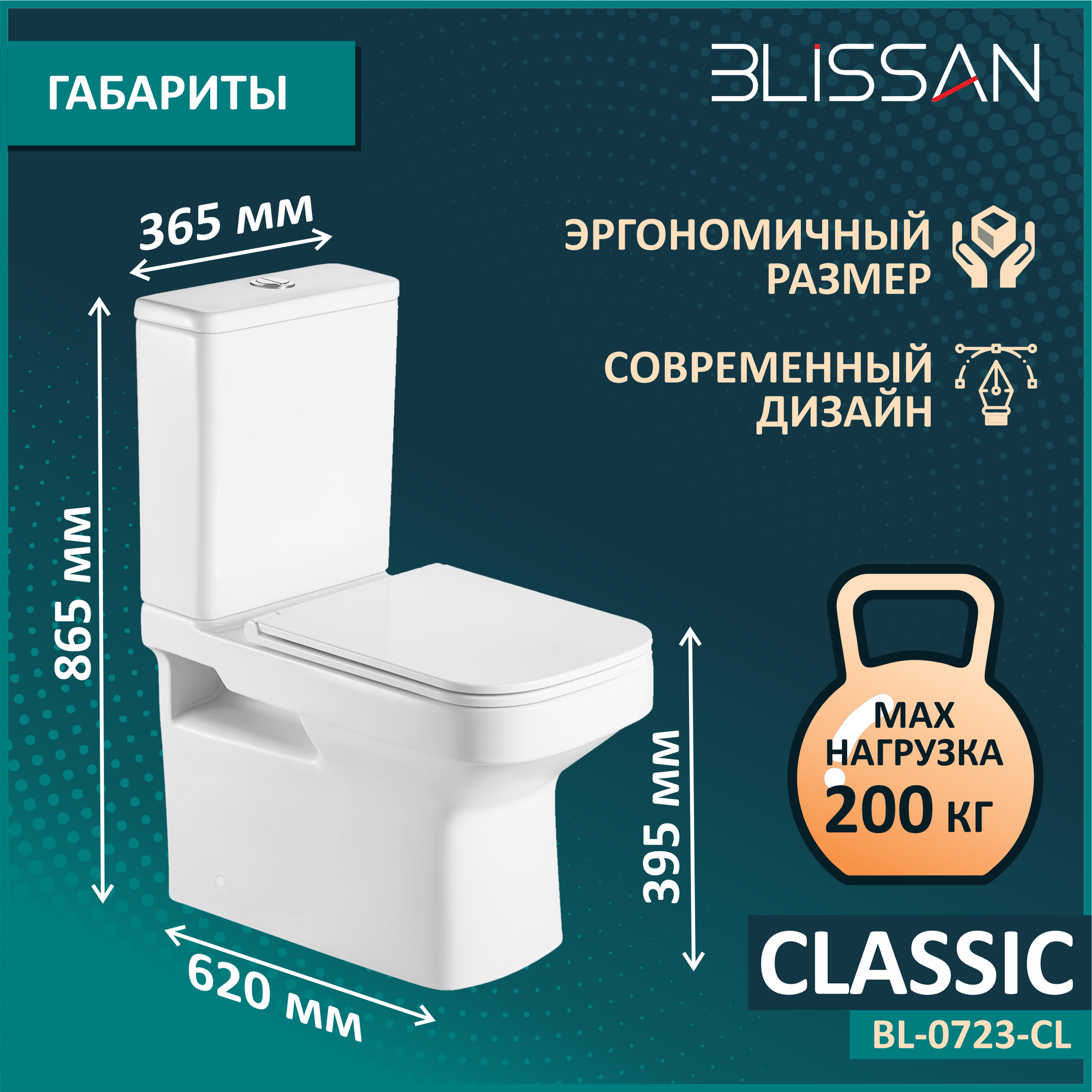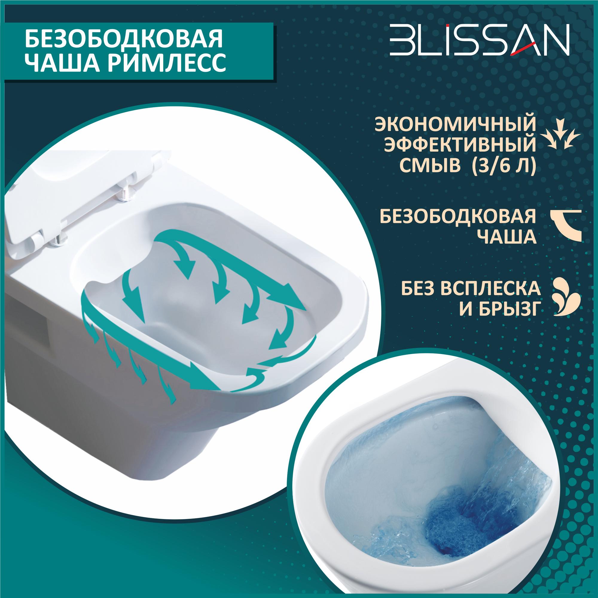 Купить Унитаз напольный BLISSAN Classic Rimless компакт безободковый с сиденьем дюропласт микролифт быстросъемное