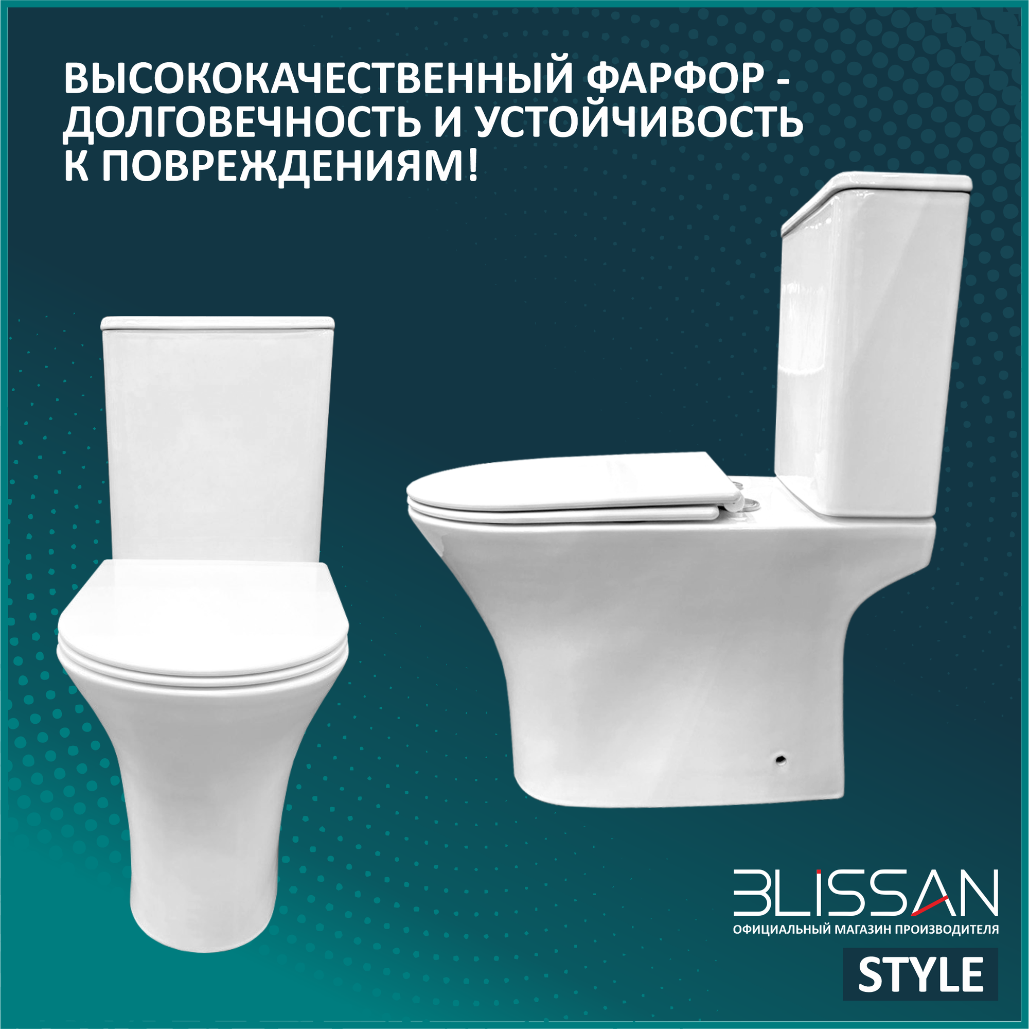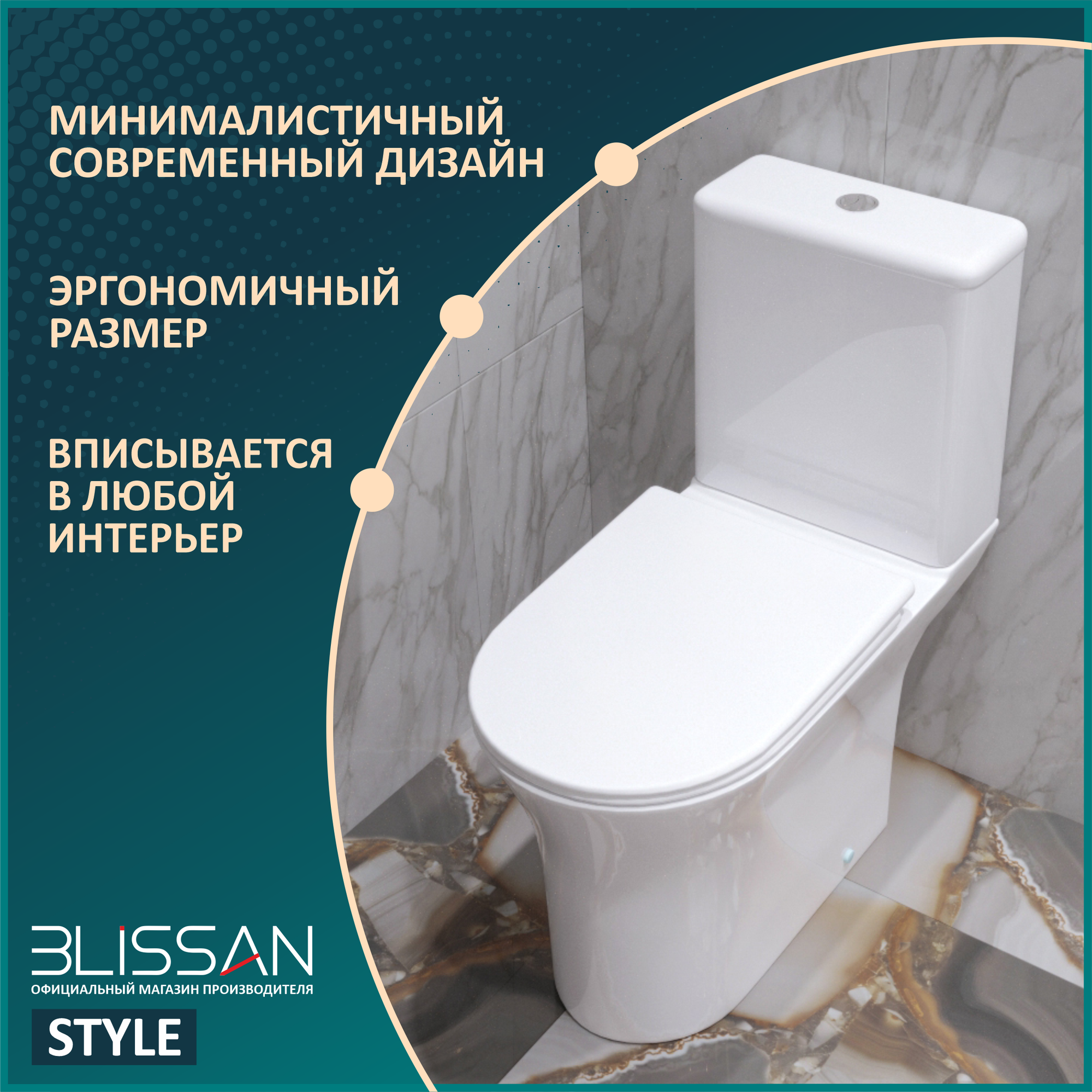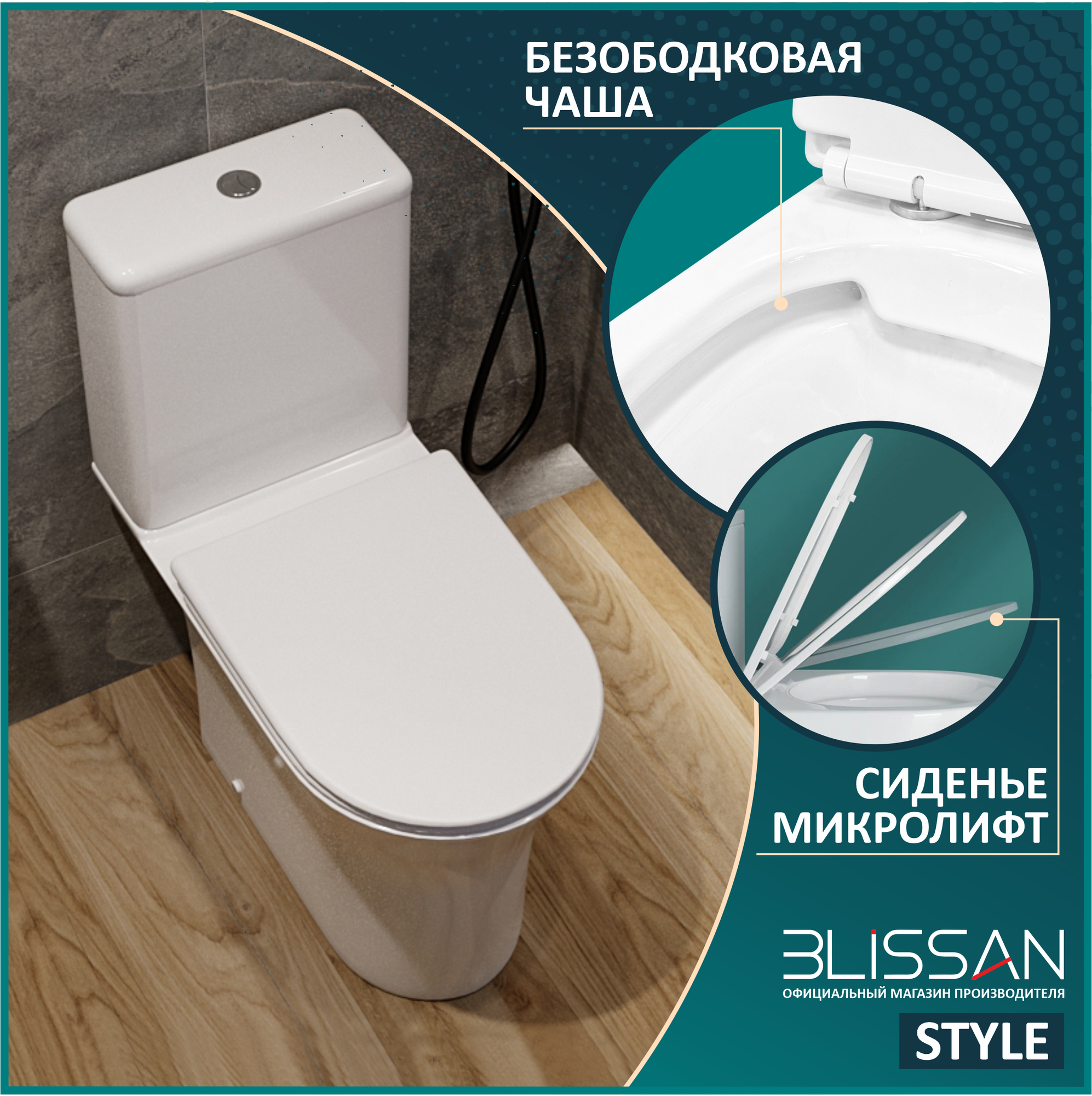 Купить Унитаз напольный безободковый BLISSAN Style Rimless компакт с сиденьем дюропласт микролифт, быстросъемное