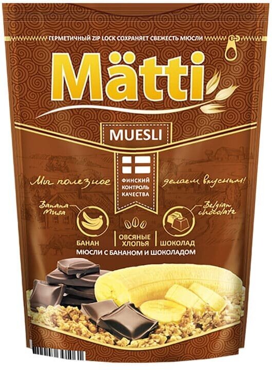 Мюсли Matti с бананом и шоколадом 250г Дой пак