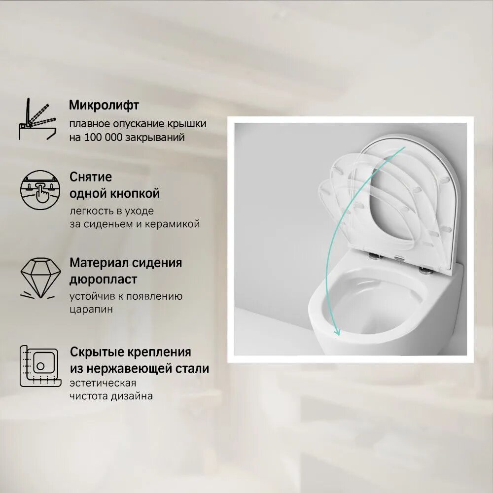 Унитаз подвесной безободковый с микролифтом AM.PM Suit FlashClean, быстросъемное сиденье, унитазы подвесные для инсталляции, антивсплеск, премиальный фарфор, гарантия 25 лет, Германия интересное: