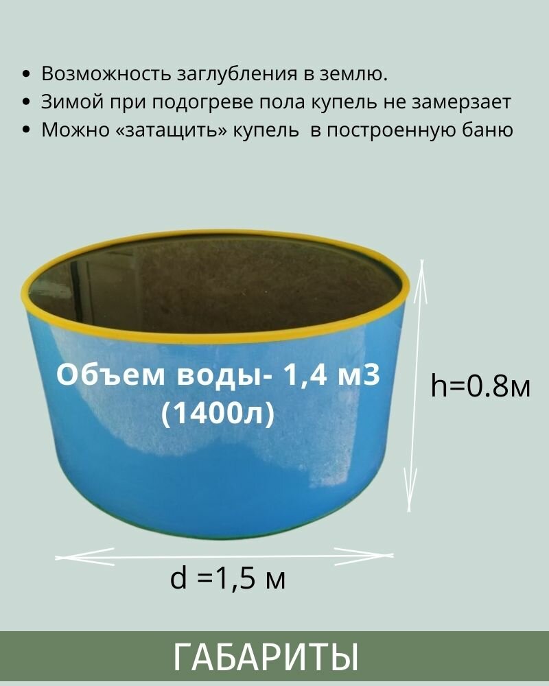 Банный чан Горыныч для 2х-4х человек стандартная лестница купель 1500 литров диаметр 170 см