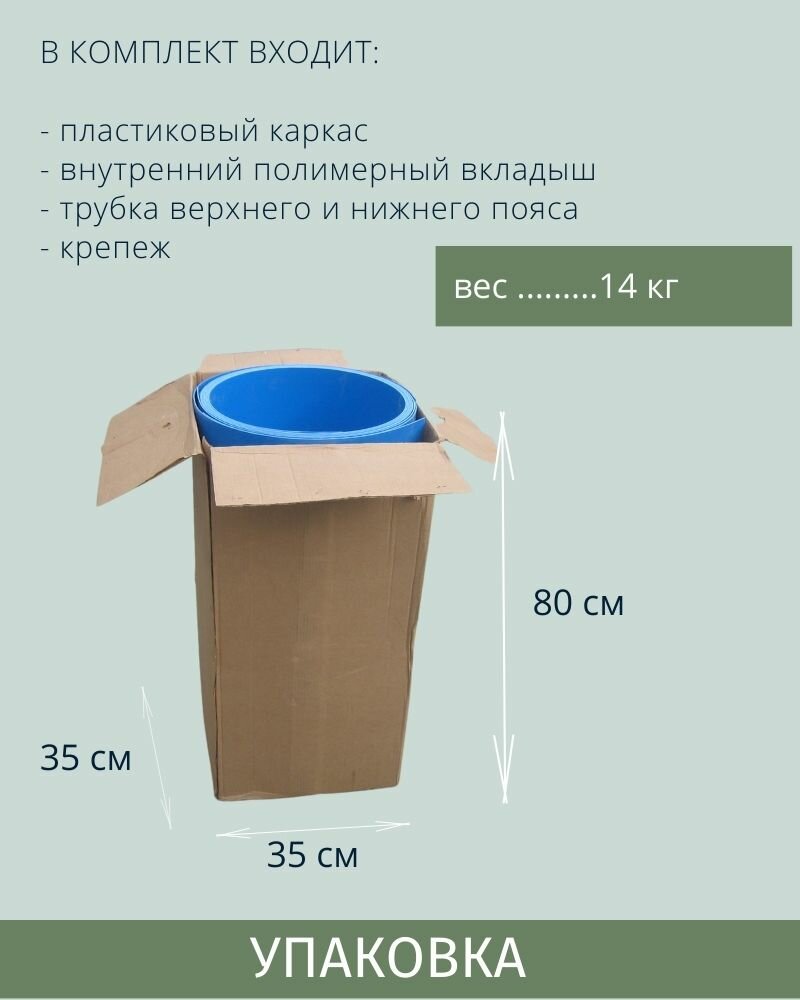 | Подробная комплектация | - пластиковый каркас - внутренний полимерный вкладыш - трубка верхнего пояса - крепеж |