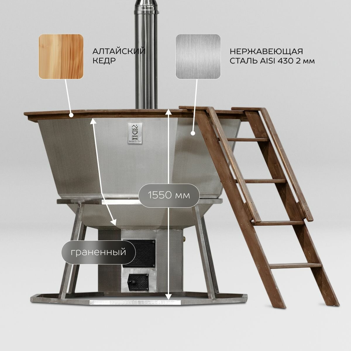 Банный чан Горыныч для 2х-4х человек стандартная лестница купель 1500 литров диаметр 170 см