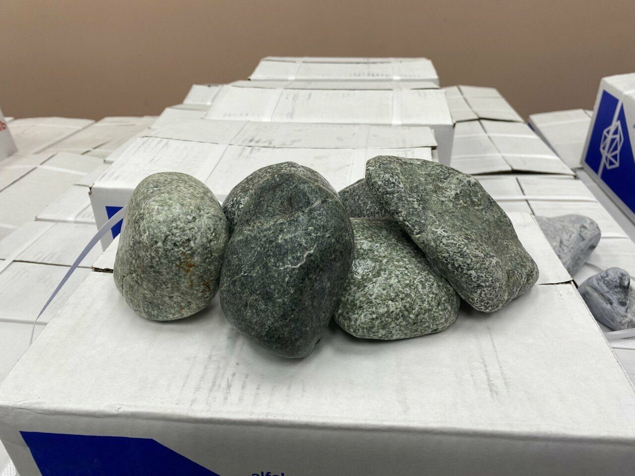 Хакасия Жадеит колотый камни для бани и сауны (размер 7-16 см) упаковка 10 кг