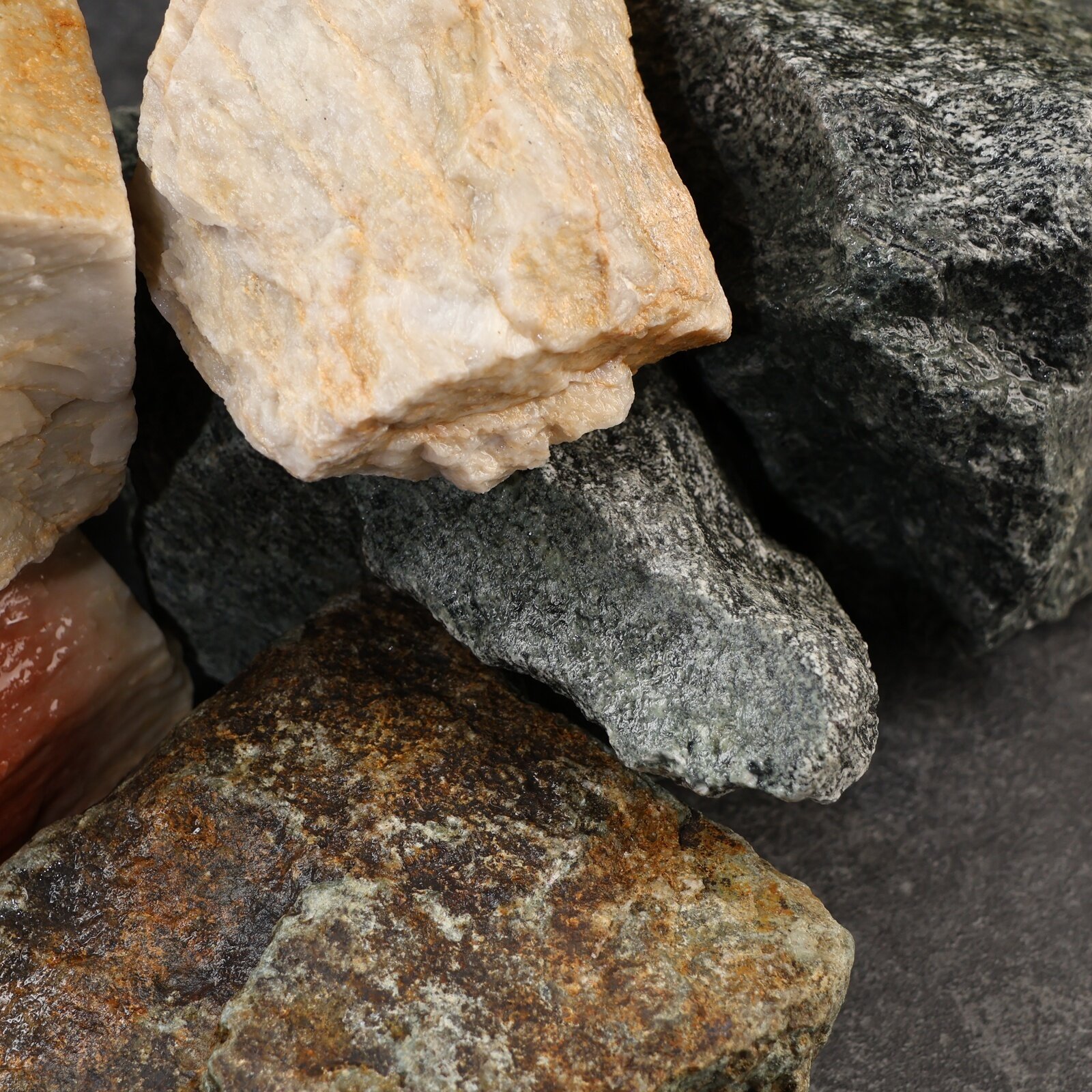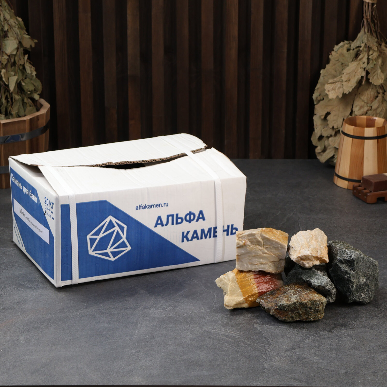 Микс камни для бани Жадеит Яшма Кварц колотые 8-15 см упаковка 15 кг