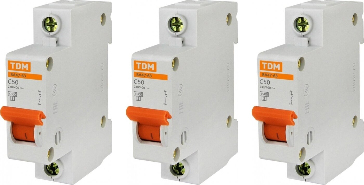 Купить Автоматический выключатель TDM Electric ВА47-63 1P 50А характеристика C (комплект из 3 шт.)