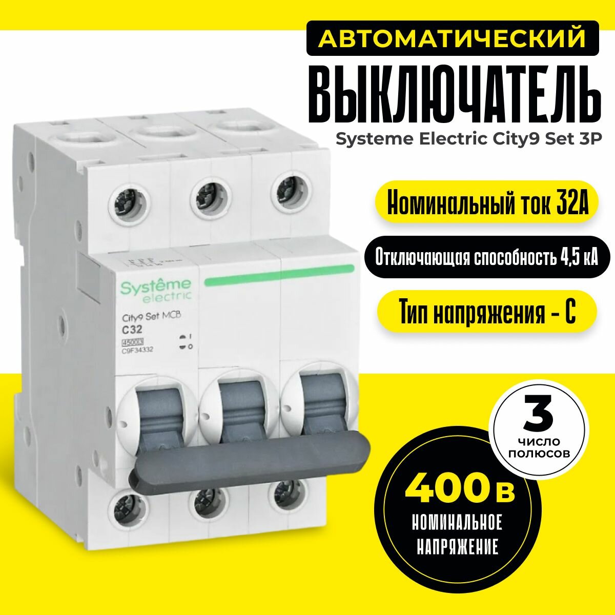 Автоматический выключатель 3-полюсный, 32А, 4.5kA (хар-ка C) City9 Systeme Electric, C9F34332