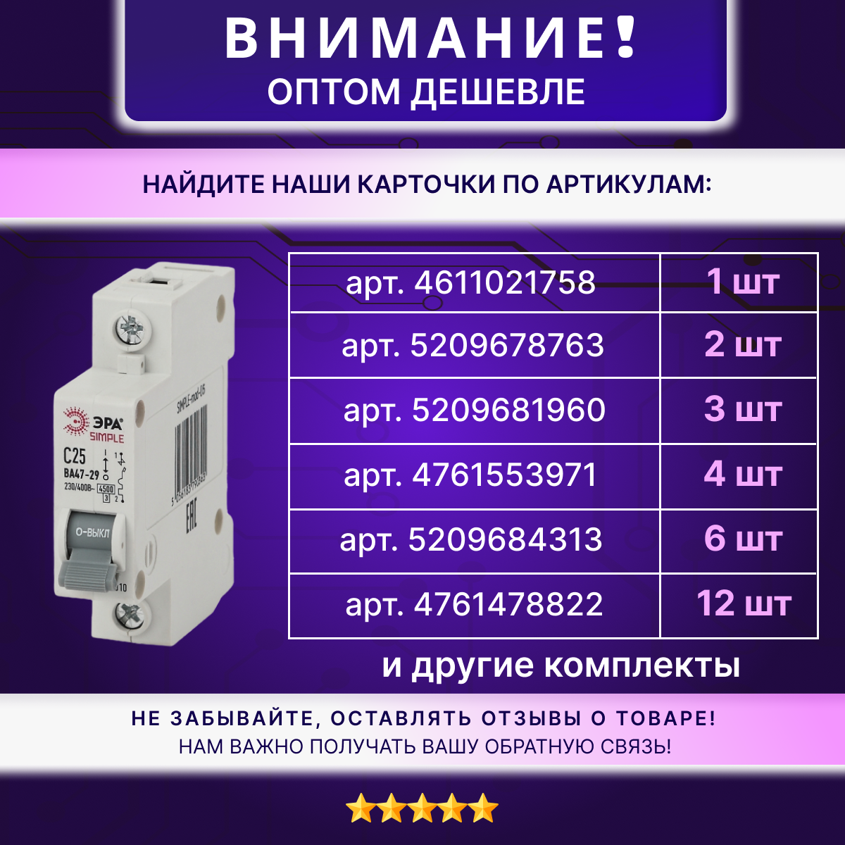 Автомат Б0039222 ЭРА SIMPLE-mod-05 1P 25А C выключатель ВА 47-29 7шт