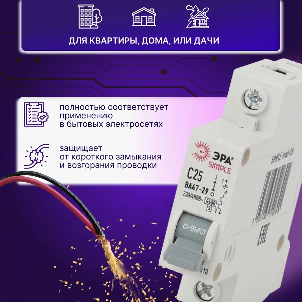 Выключатель автоматический модульный 1п C 25А 4.5кА ВА 47-29 SIMPLE-mod-05 ЭРА Б0039222
