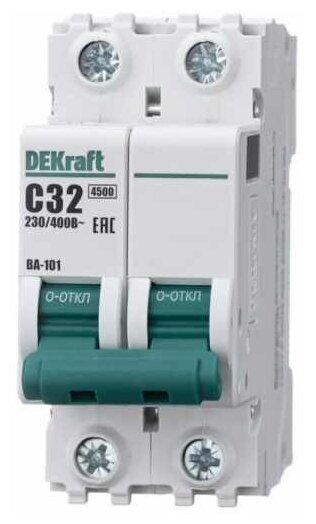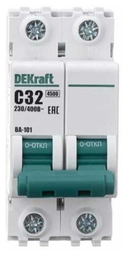 ВА-101 Автоматический выключатель 2-полюсный, 32А, 4.5kА (хар-ка C) DEKraft, 11069DEK