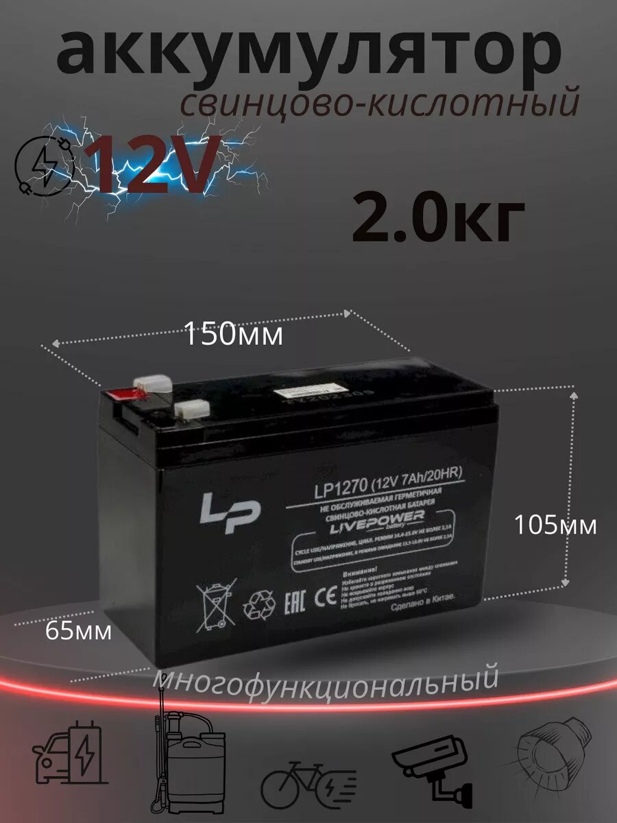 Аккумулятор для опрыскивателя 12V/7Ah/20HR интересное: