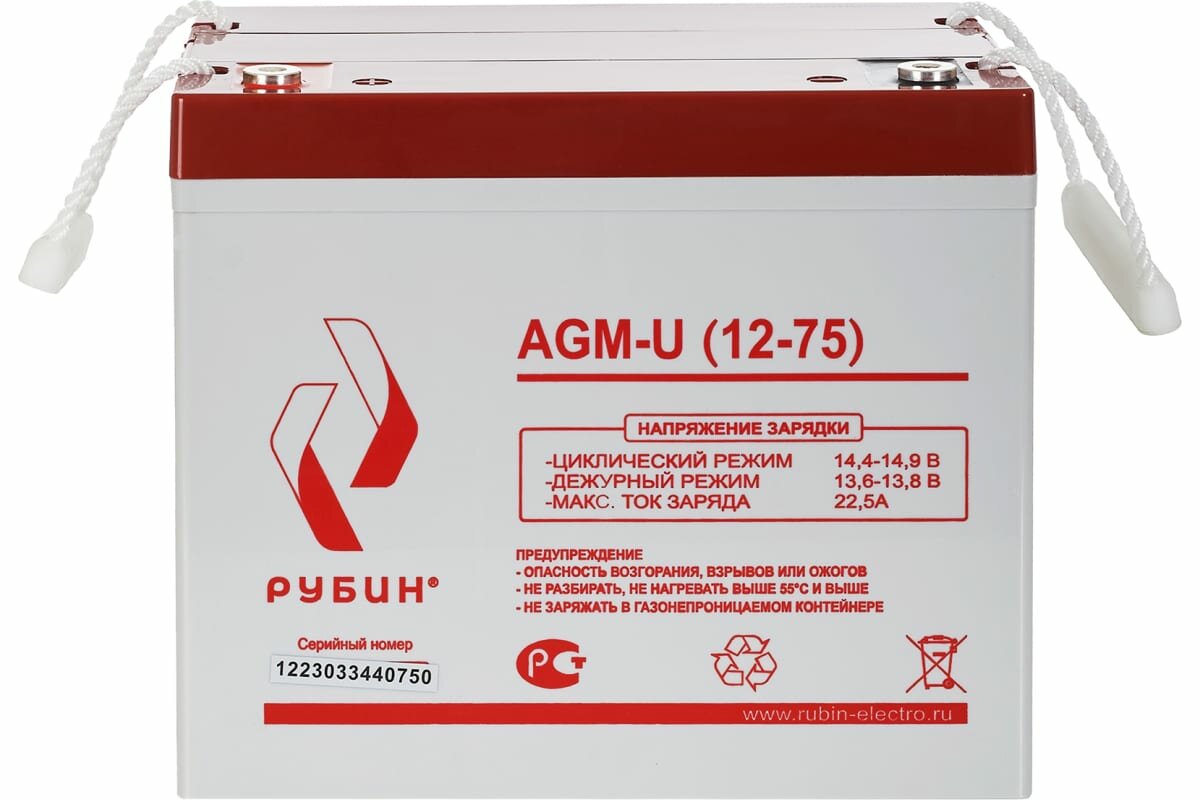 Аккумуляторная батарея Рубин 12V 75Ah AGM-U (12-75)