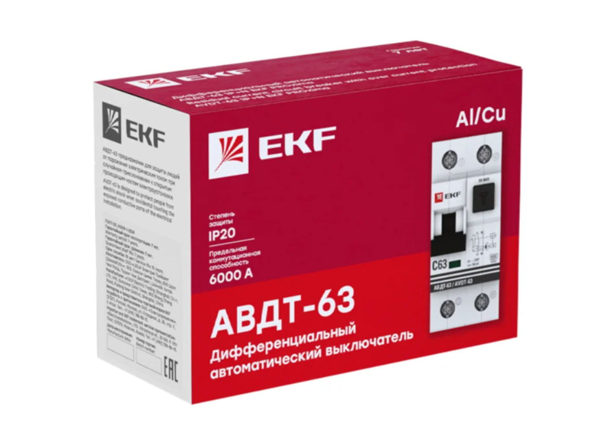 Дифференциальный автомат EKF АВДТ-63 2П 100 мА A 6 кА A