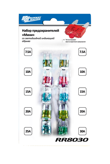 Купить Набор предохранителей-мини со световой индикацией обрыва Runway RR8030