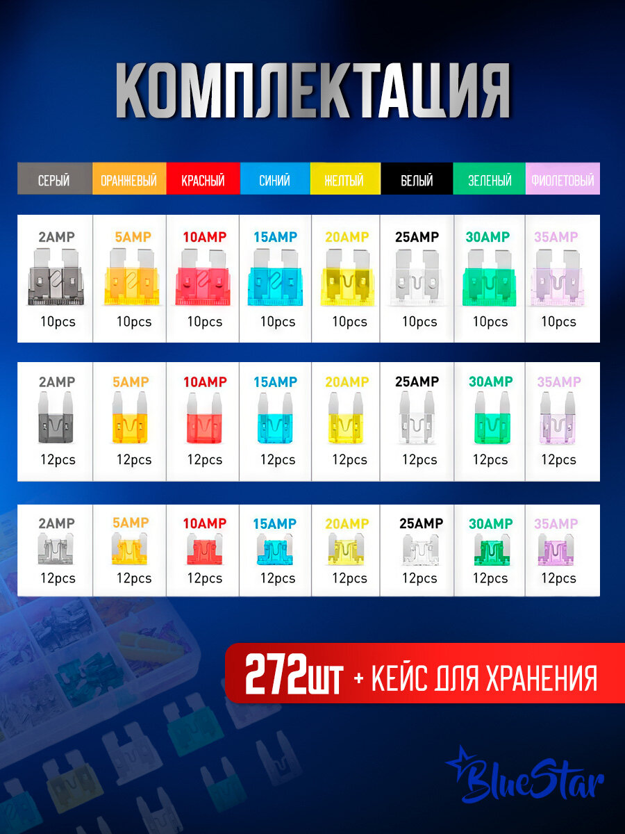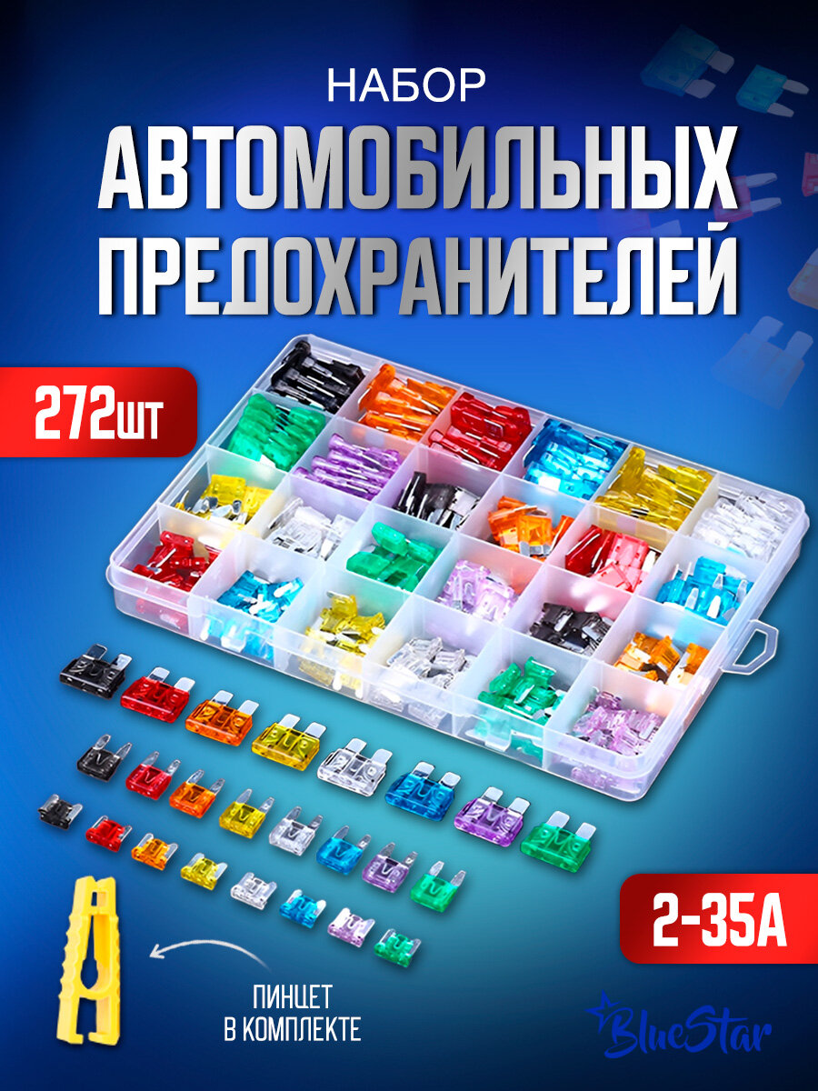 Набор автомобильных предохранителей 3 размера 272 предмета 2-35 A интересное: