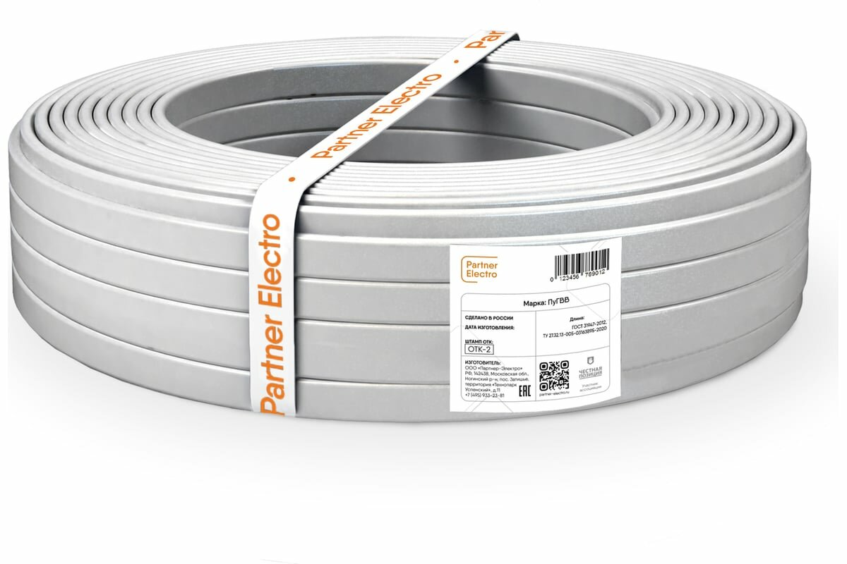 Провод Партнер-Электро ПуГВВ 2x1.5 50 м ГОСТ