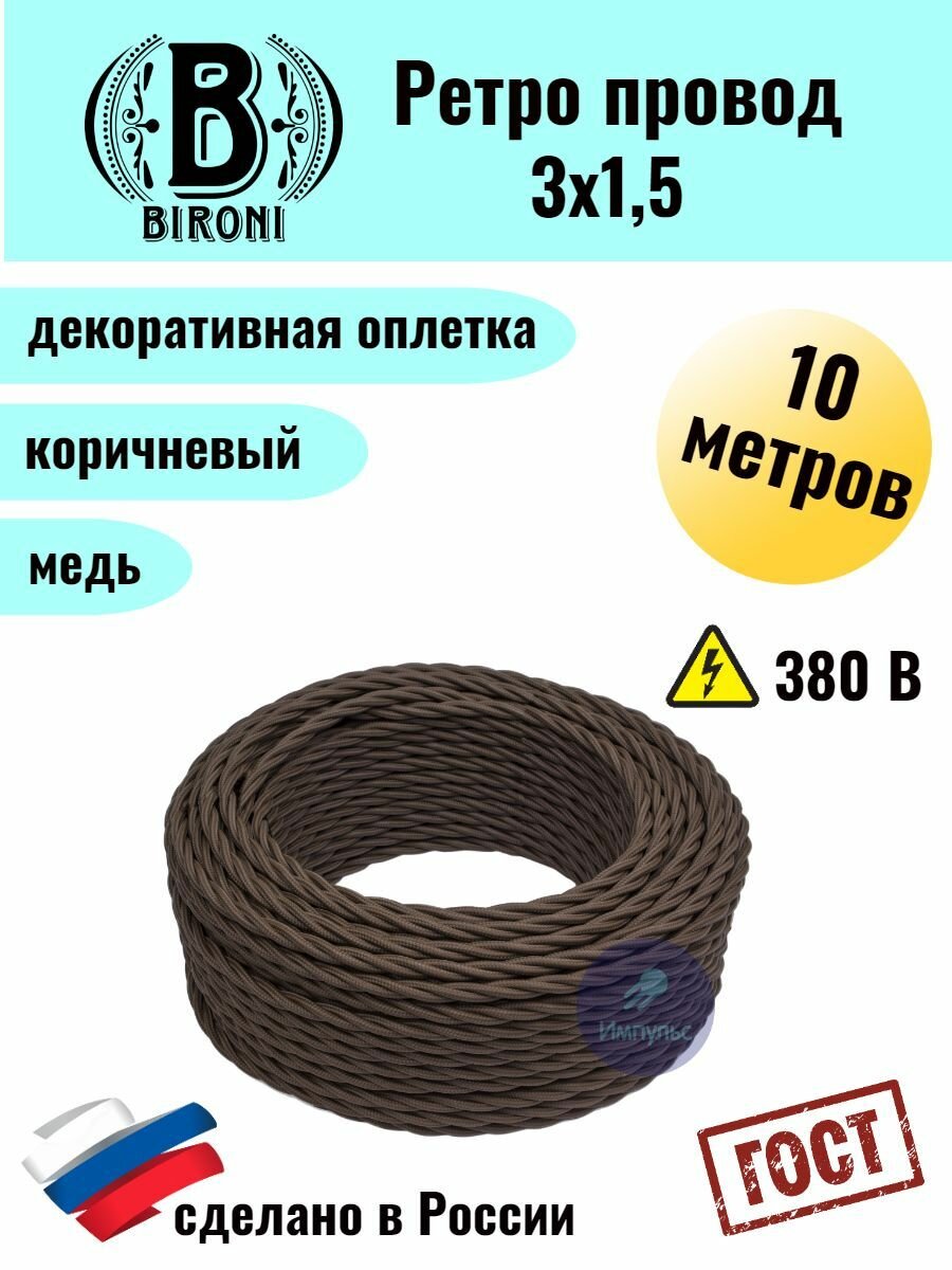 Витой ретро провод BIRONI Бирони 3х1,5 матовый, 10 м/уп, B1-434-72-10 цвет: коричневый