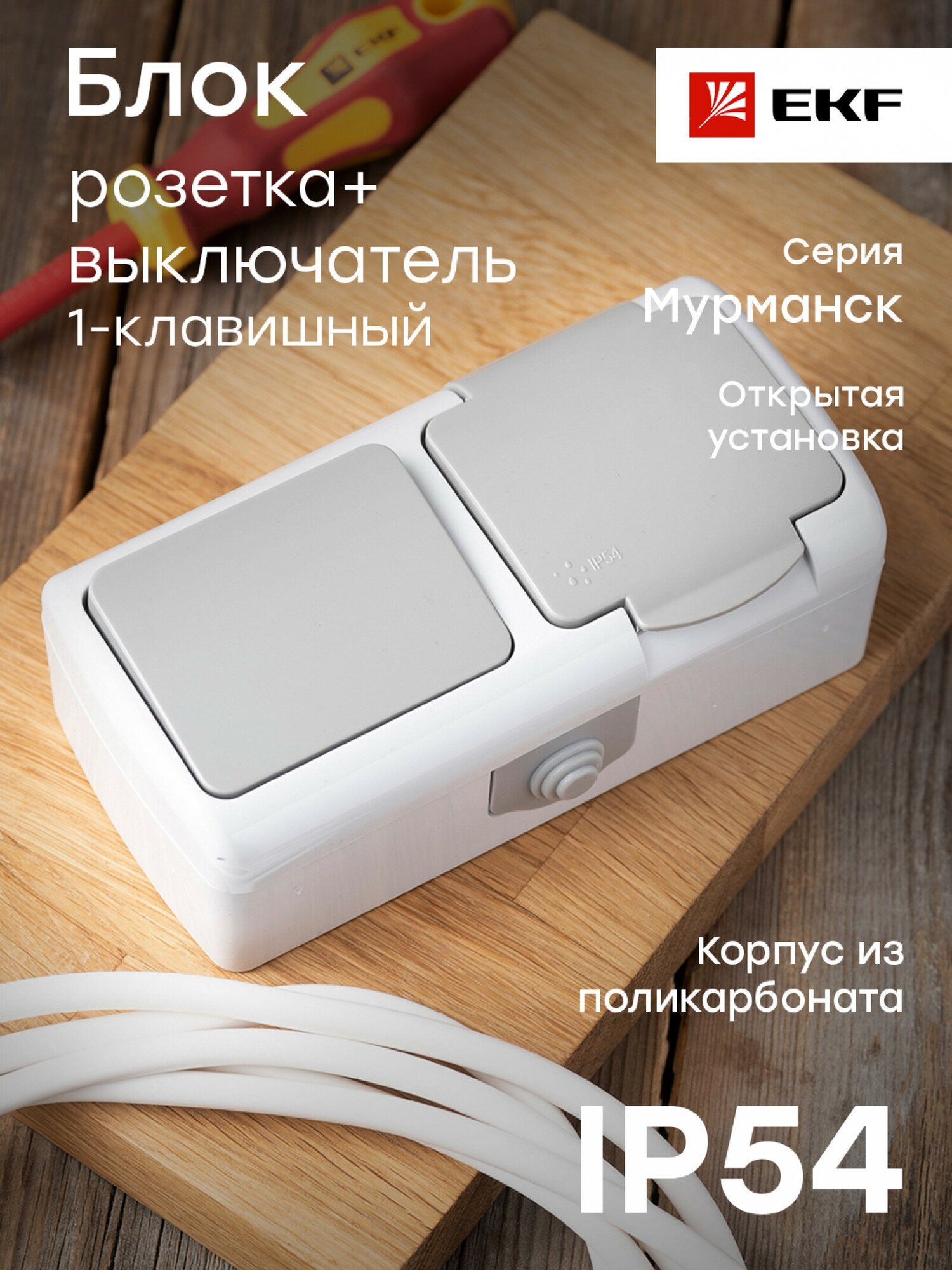Мурманск Блок розетка 1-м 16А с заземлением с крышкой- 1-кл выключатель IP54 серый EKF интересное: