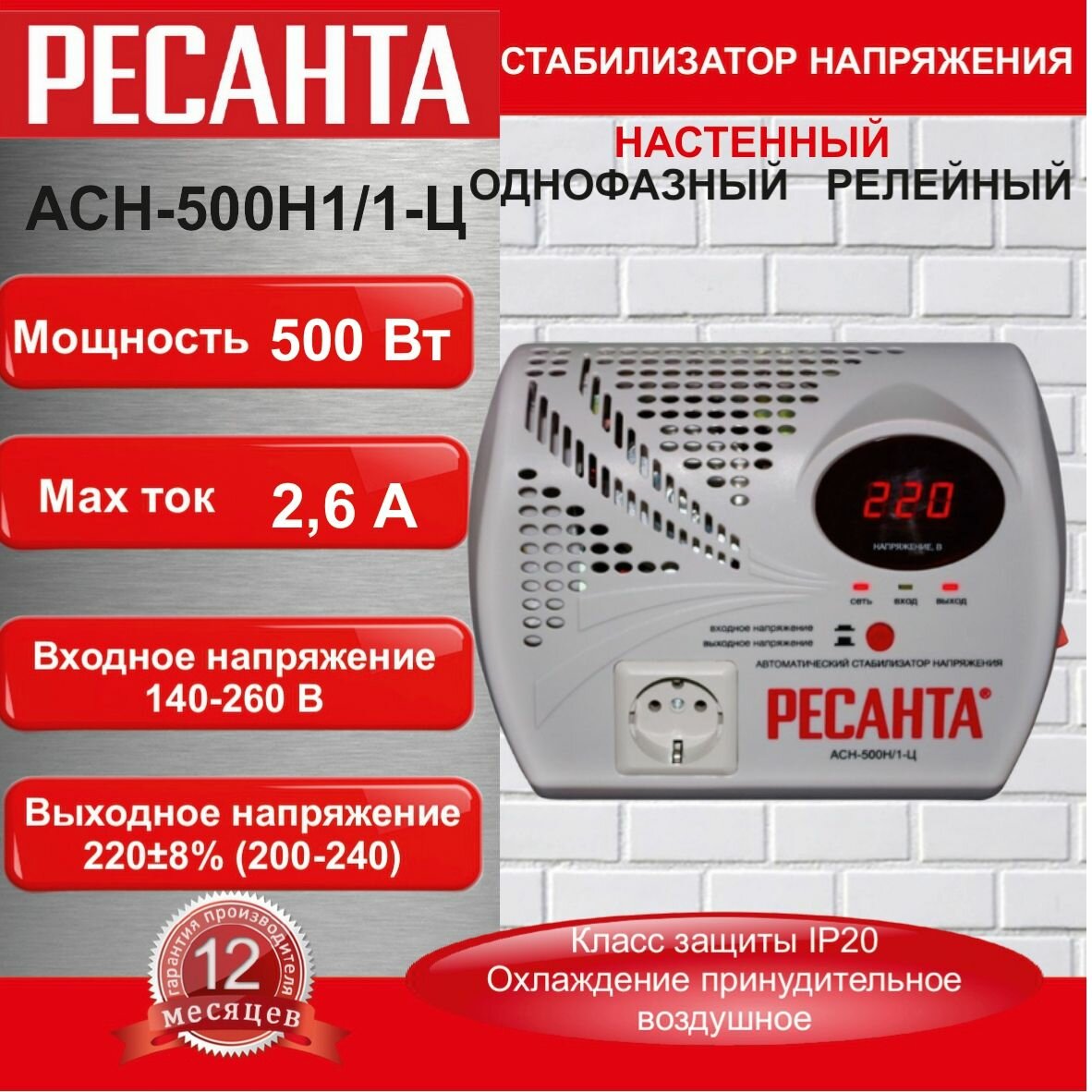 Стабилизатор АСН - 500Н1/1-Ц Ресанта (однофазный, 140 В - 260 В, 2.6 А, 0.5 кВт, 50 Гц, розеток - 1, без дисплея) интересное: