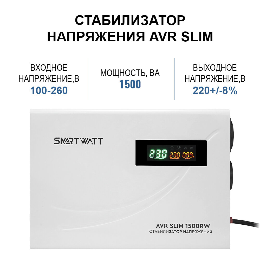 Настенный стабилизатор напряжения 1500 Вт SMARTWATT AVR SLIM 1500RW интересное: