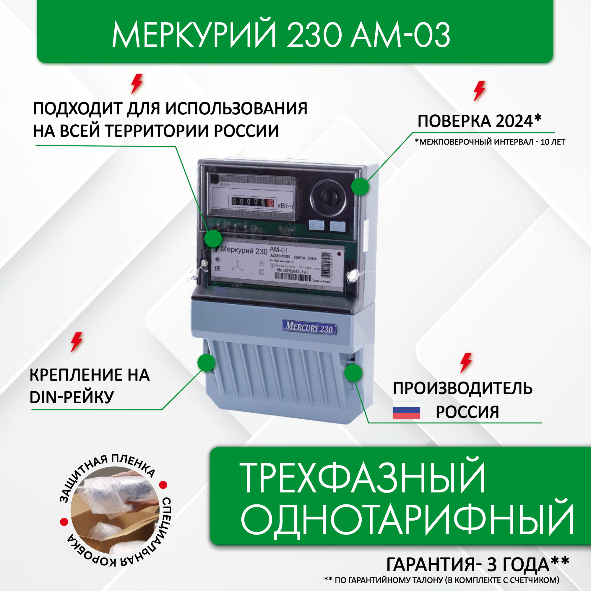 Счетчик электроэнергии Меркурий 230 AM-03, 3*230/400, 5(7,5) А, трехфазный, однотарифный интересное: